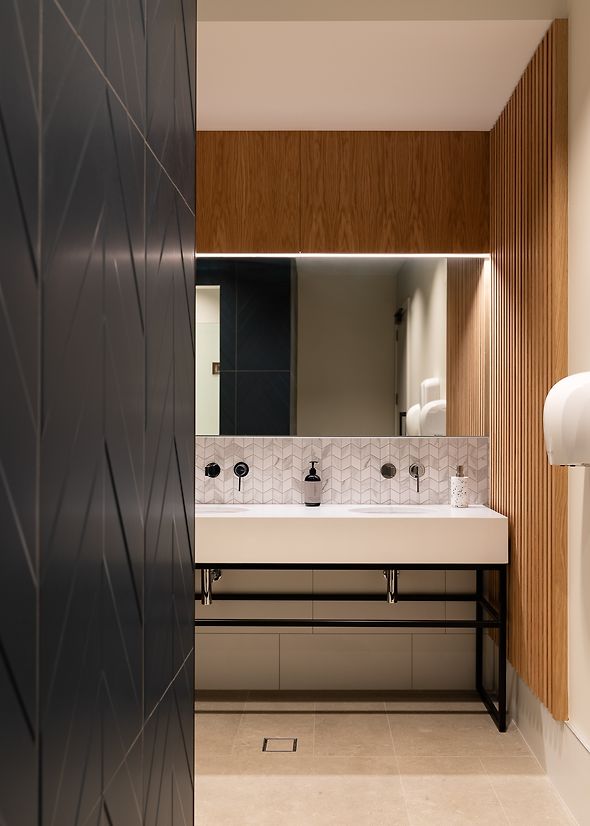 The internal spaces continued the biophilic approach with careful attention to texture, appreciation of the changing light through the day, and the connection of interior and exterior spaces.
