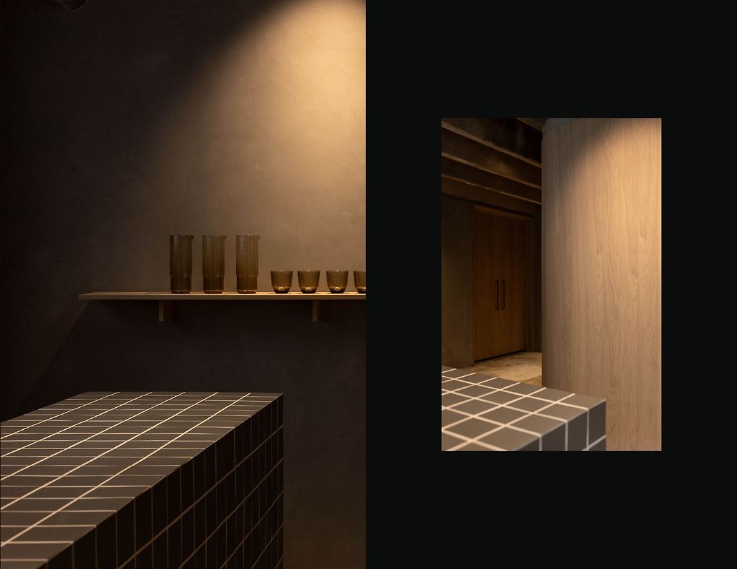 Upon entering, visitors are encapsulated by the studio's potency: a subterranean bath house aesthetic that pairs contrasting materials. Premium-grade timber meets gutsy scarred concrete, neatly-set tiles find structure next to burred cold-rolled steel.