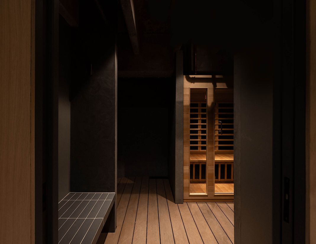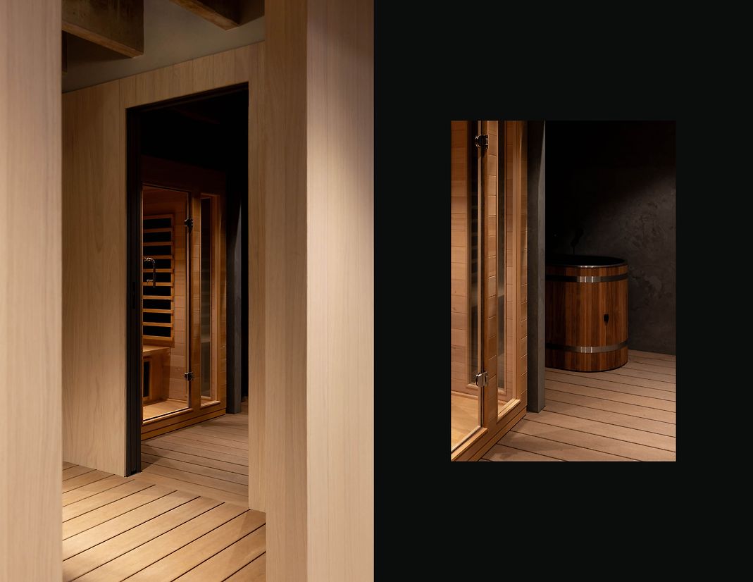 Recovery rooms are lavishly shrouded in warmth, an acoustically-private & capsular interior that provokes escapism & restoration. This tranquillity offers the mental space needed to soak both in cold ice and intense heat.
