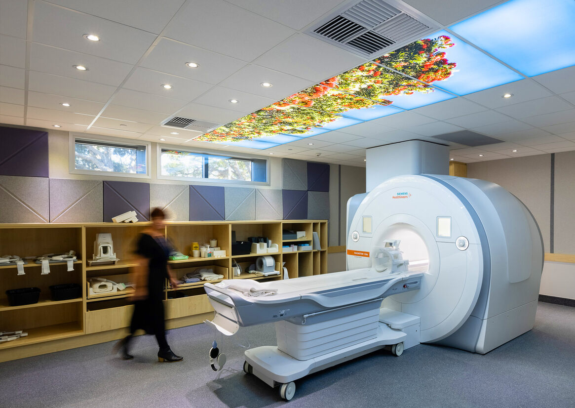 Totem Studio were privileged to partner with PRG in this brand new flagship branch for Wellington . We tested each potential location for how their high tech systems might be set out and workflow maximized and in some cases investigated potential refurbishing of the basebuild structure of some potential locations. The redevelopment of Wakefield Hospital was chosen providing the opportunity for Pacific Radiology to relocate from their long established but well worn tenancy space into a brand new fit out, within the new hospital building. The new branch was to provide, Ultrasound, X-ray, Fluoroscopy, Mammography, CT and MRI services, whilst also presenting a calm uplifting and memorable patient experience.