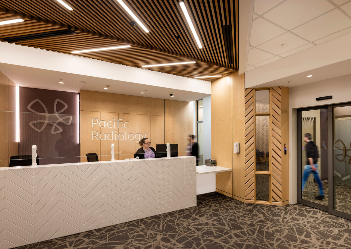 As a private healthcare service provider Pacific Radiology expect a tangible level of atmospheric quality and patient experience. The physical and mental health and wellbeing of visitors is central to the atmosphere we create in the contemporary high-quality spaces & unique character environments we have established for the client. Patients may frequently arrive anxious, angry or frightened as a response to their present health concerns, therefore the interior architectural design we provide for their staff and patients is light and open. Visual imagery and motifs are deliberately familiar and therefore the space becomes intuitively safe.