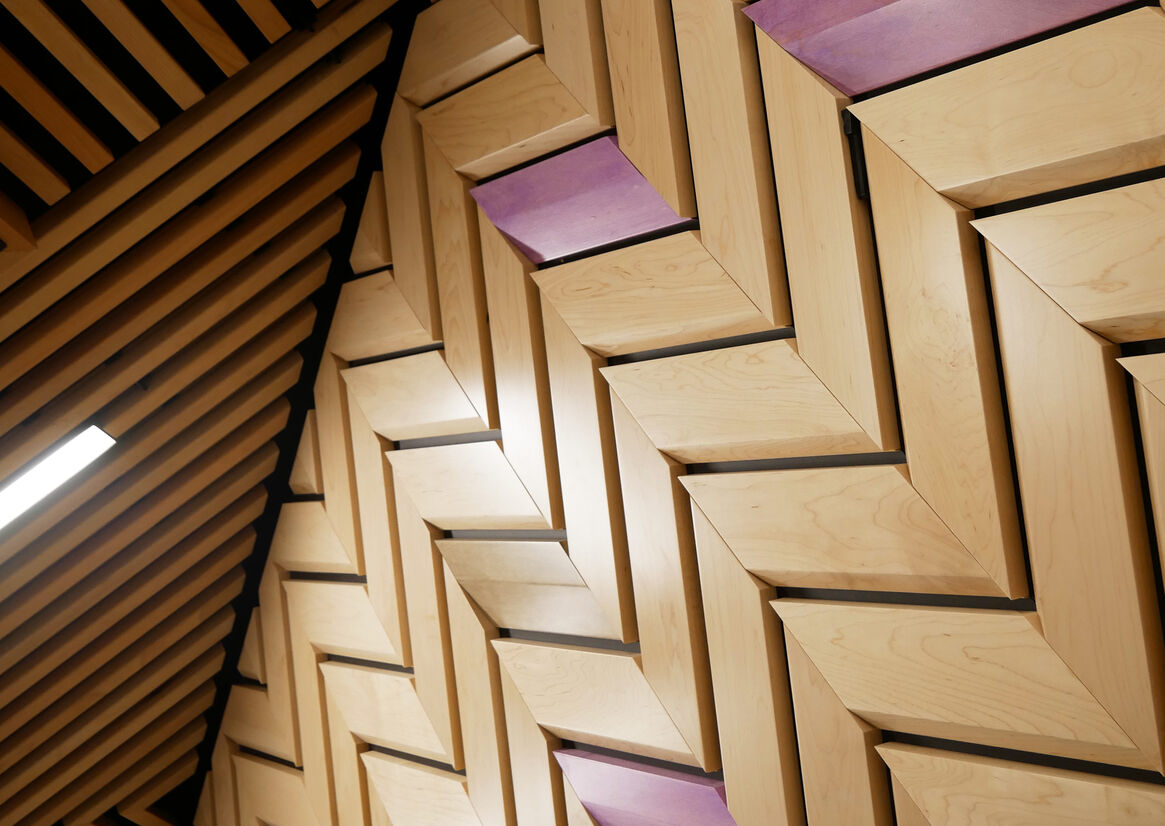 The softer tones of maple timbers provide friendliness and warmth and the attention to design detail imbues a level of quality and care in the design that represents the quality of care they provide their patients. Tones of PRG purple brand colour in the wood, acoustic panels, wall coverings and fabrics are used strategically providing a friendly cohesive pallet through the branch that’s not overly commercial.