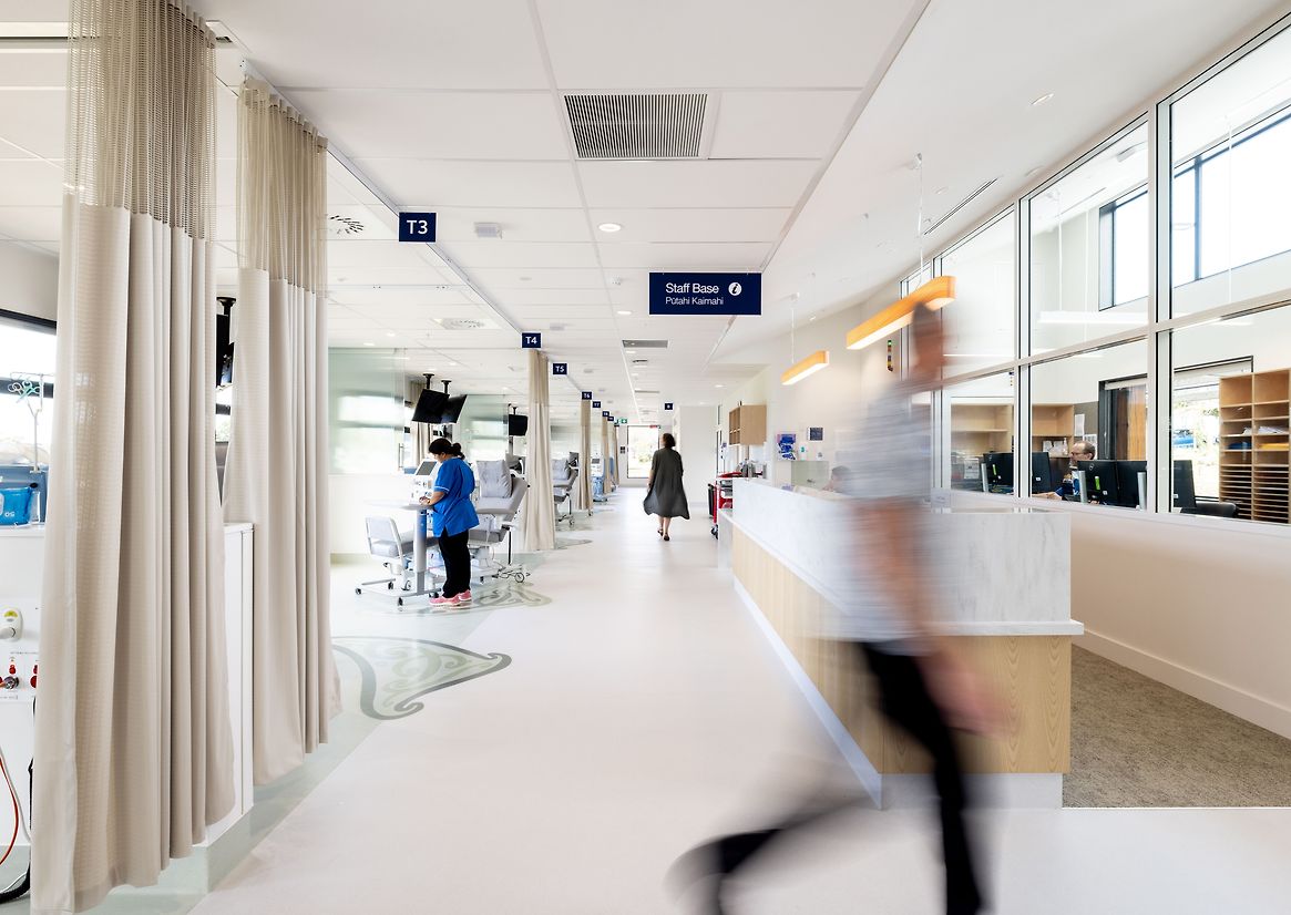 Te Huhi Rāupo, the Renal Unit at Taranaki Base Hospital, brings a holistic shift to the care of dialysis patients and their whānau. This 806m2 outpatient clinic packs a big climate-conscious punch and shifts expectations of what is possible in healthcare architecture.