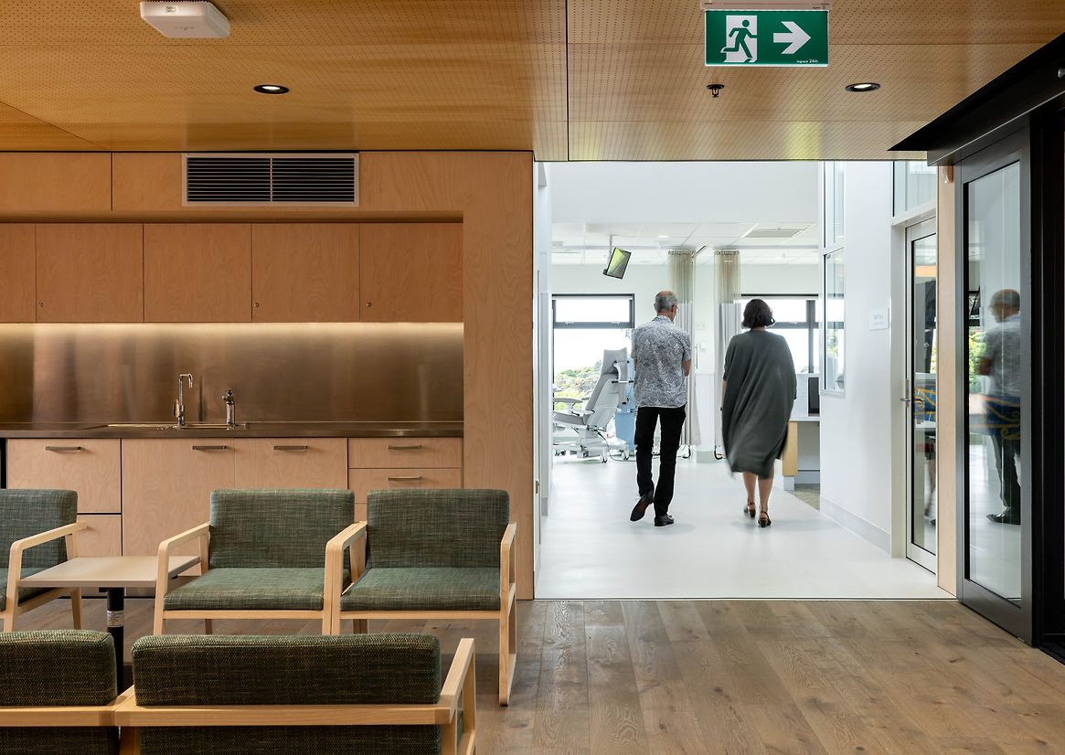 The brief was for a single level, economically efficient and environmentally responsible building offering an exceptional patient experience. Built to maximise sea views, and to feel more like a clinic than a hospital, Te Huhi Rāupo creates an optimal environment for patient wellbeing. It is uplifting and aspirational; with natural daylight, views and openable windows offering a sense of hope and relaxation. Privacy, air quality and acoustic performance have been carefully considered to ensure a quiet and comfortable space.
