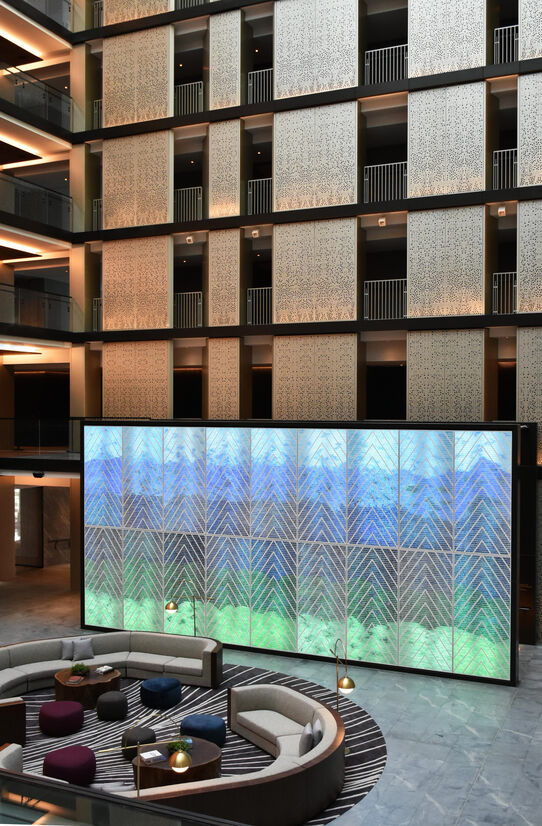The design approach is inspired by Auckland Harbour’s strong sense of place and its close relationship to the vibrant city’s urban grain. Drawing upon New Zealand’s rich natural beauty and its strong multicultural heritage, a unique space has been created with a distinctive sense of luxury. Guests are welcomed by a striking reception area taking the guest from an intimate space to a dramatic full-height atrium which reveals the hotel’s open corridors and central courtyards.