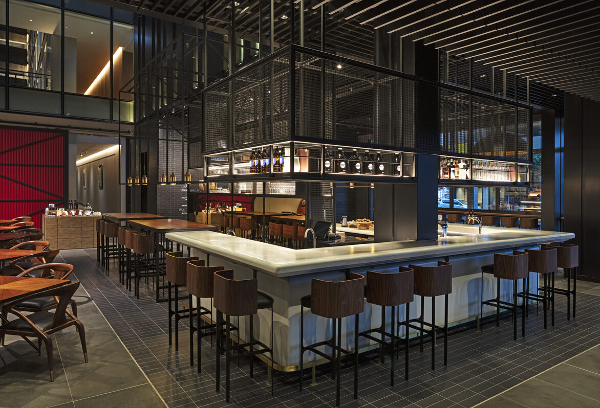 The design includes a range of dining and function spaces including The Pantry, a casual ground floor eatery with a dramatic, full-height atrium space; Onemata, which features an open kitchen and benefits from spectacular views out over the harbour; The Captain’s Bar, a contemporary take on a harbourside pub but layered with Park Hyatt’s sophistication and a cosy fireplace; The Boathouse, a nautical function space; a rooftop bar and function space and an array of event spaces on the first floor.