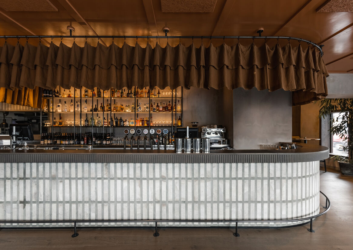 The idea was to create an intimate and cosy local bar and eatery with subtle residential cues that soften the commercial hospitality experience. Siso was designed to be a refuge from the slick nature of Remuera. Soft, natural moments with texture and character deliver a casual, humble aesthetic, while darker complementary areas offer warmth and shadow to inject a sense of mood and intimacy.