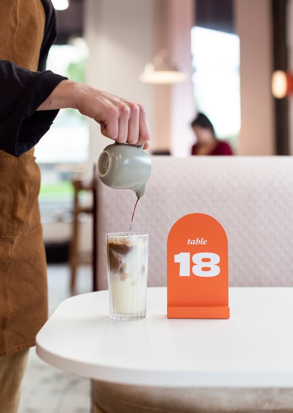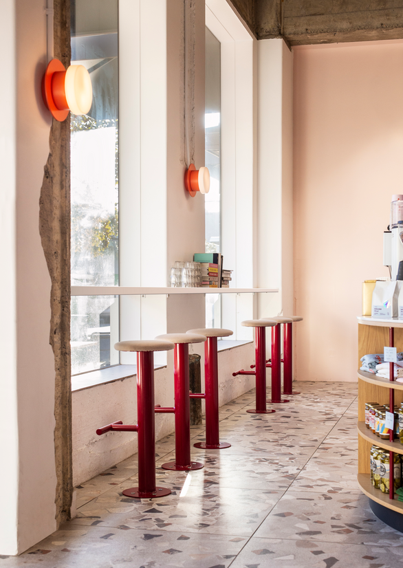 Proprietors Chrissy and Luke bring two distinct angles to their work, with Chrissy as the queen of cakes and sweet treats, and Luke with his famous fried eggs and passion for big flavour in his savoury offerings. Colour, form and finish choices were chosen to reflect both the contrasting and complementary nature of their different skills.