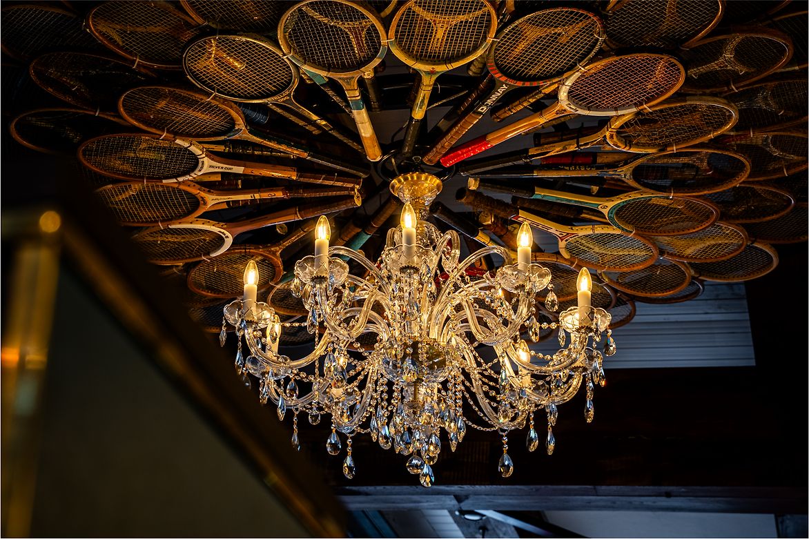 Throughout the design process, we worked closely with skilled craftspeople to strike a balance between vintage charm and contemporary sophistication. From custom furniture and joinery to a carefully curated mix of lighting, every element was considered. A highlight of this collaboration was the oversized vintage tennis racquet chandelier—a playful, handcrafted statement piece that captures the spirit of the venue. Hand-painted, textured wall finishes by a specialist artist add further depth.