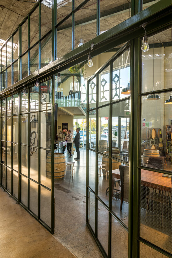 The fit-out helps to pull some of the bigger front of house elements together and create a strong link to the productive warehouse. A new large industrial glass wall, a front counter area, and a mezzanine fit-out have been added to assist this. The brief was to help bring all the elements within this functioning business together and make it cohesive.