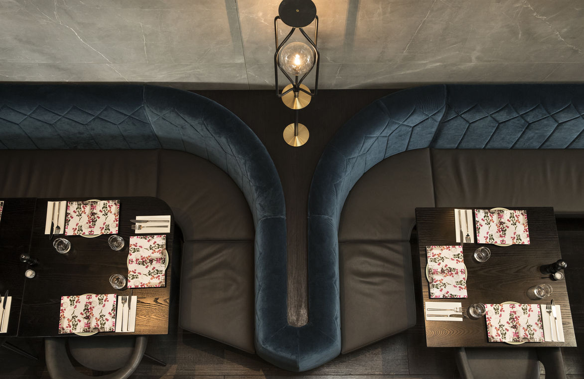 Creative application of traditional crafts and details gives this space a uniqueness. The consistency and extensive innovative detailing enriches the overall experience.