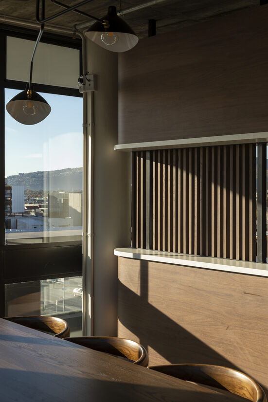 The proposed site for the restaurant was the seventh floor of the Canterbury Terminating Building Society’s former offices and the last remaining large-scale building by local architect Peter Beaven. Beaven played a key role in defining the architectural movement known as the Christchurch School, a regional response to post-war Modernism. His buildings were characterised by an expressive use of form, precise geometries and direct use of materials.