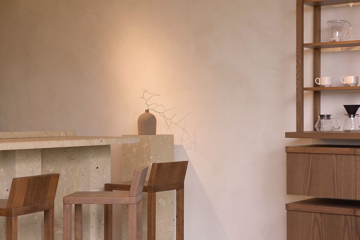 Based in Hamilton Waikato, Grey Roasting Co has made a name for itself producing premium coffee beans, talented barista champions and award-winning latte artists. Every aspect of coffee production is approached and presented with meticulous care and enormous pride; there is a strong sense of whanau amongst the staff, which is infectious and extended to all Grey Roasting Co customers. Situated within the MADE Markets of Hamilton East, overlooking the tree-lined banks of the Waikato River, Studio 11:11 was initially met with a South facing concrete basement. The challenge was to design a premises which could be as tranquil and serene as its leafy surroundings, whilst providing an interior atmosphere that felt very much a part of the land and the riverbank it occupies. The approach to interior detailing was twofold – 1) to create the feeling of a gallery, with a subdued and textured material palette, exploiting existing vertical rhythms of concrete block columns which form the backdrop for the artistry of coffee to be curated & showcased; and 2) to create the feeling of a homely and domestic residence, with soft fabrics, custom furniture, designer homeware, intimate lighting, and warm timber offset against satin steel. The centrepiece of this “residence” is a large Hinuera stone bench which showcases beautiful natural volcanic material from a nearby quarry in Cambridge. The Hinuera stone bench is flanked at each end by warm custom timber cabinetry. At one end open shelving floats from an Ostumigaki plastered wall, and at the other the same warm timber takes the form of a multi-purpose interior partition, providing storage, a work top, frameless glazed door access to the roastery as well as a glazed view to the roastery and its inner workings. The resulting aesthetic feels modern yet classical, minimal yet rich in materiality, humble yet breathtaking in the sense of calm one feels upon entering the space. There are no large and bulky benchtop espresso machines which would otherwise provide a barrier between barista andcustomer, Dove has done away with these; rather he has curated equipment which blends into its environment, making way for direct conversation, while at the same time curating equipment so engaging that its very nature creates conversation. This interior goes further to bring people closer together. The client wanted customers to be closer to the coffee roasting and brewing process, a part of the choreography and to feel as if they are guests in the his own home. Custom counter stools and bench seating have allowed Studio 11:11's touch to reach even further into interior elements, ensuring a holistic and finely detailed spatial quality. Ultimately the task of Studio 11:11 was to create an interior which helped enhance what is a unique and special café experience, a task which has been immensely rewarding.