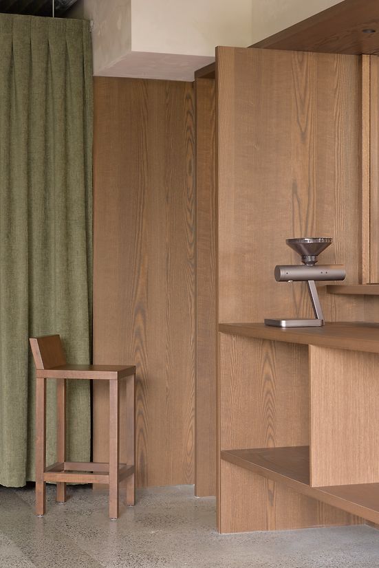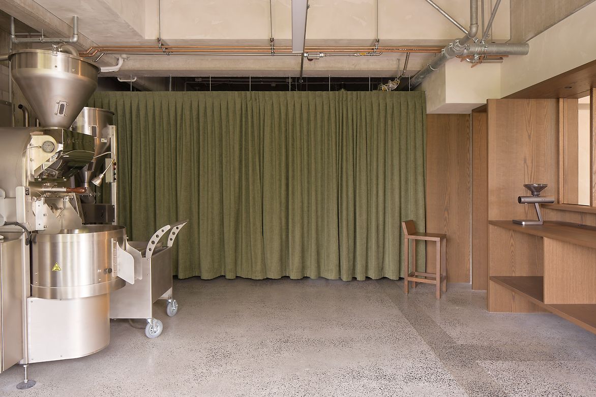 There are no large and bulky benchtop espresso machines which would otherwise provide a barrier between barista andcustomer, Dove has done away with these; rather he has curated equipment which blends into its environment, making way for direct conversation, while at the same time curating equipment so engaging that its very nature creates conversation. This interior goes further to bring people closer together. The client wanted customers to be closer to the coffee roasting and brewing process, a part of the choreography and to feel as if they are guests in the his own home.