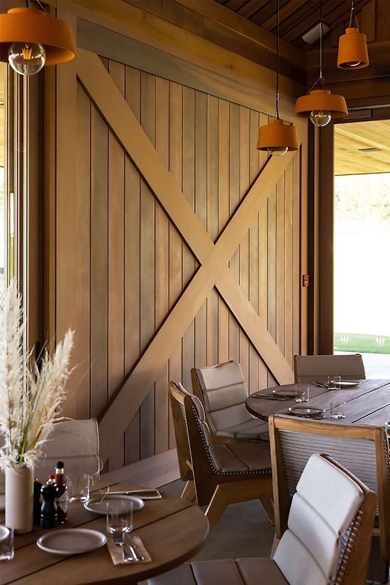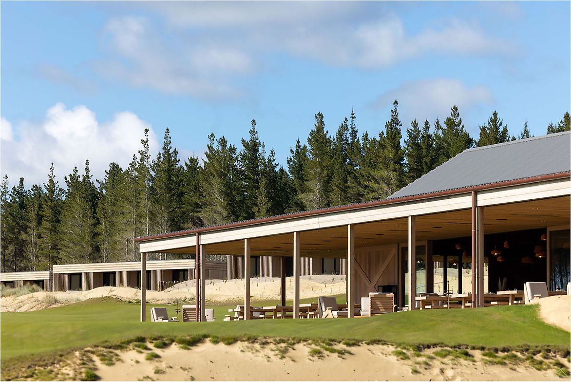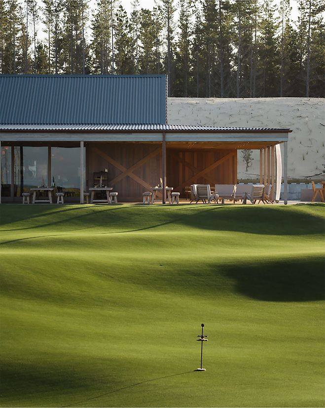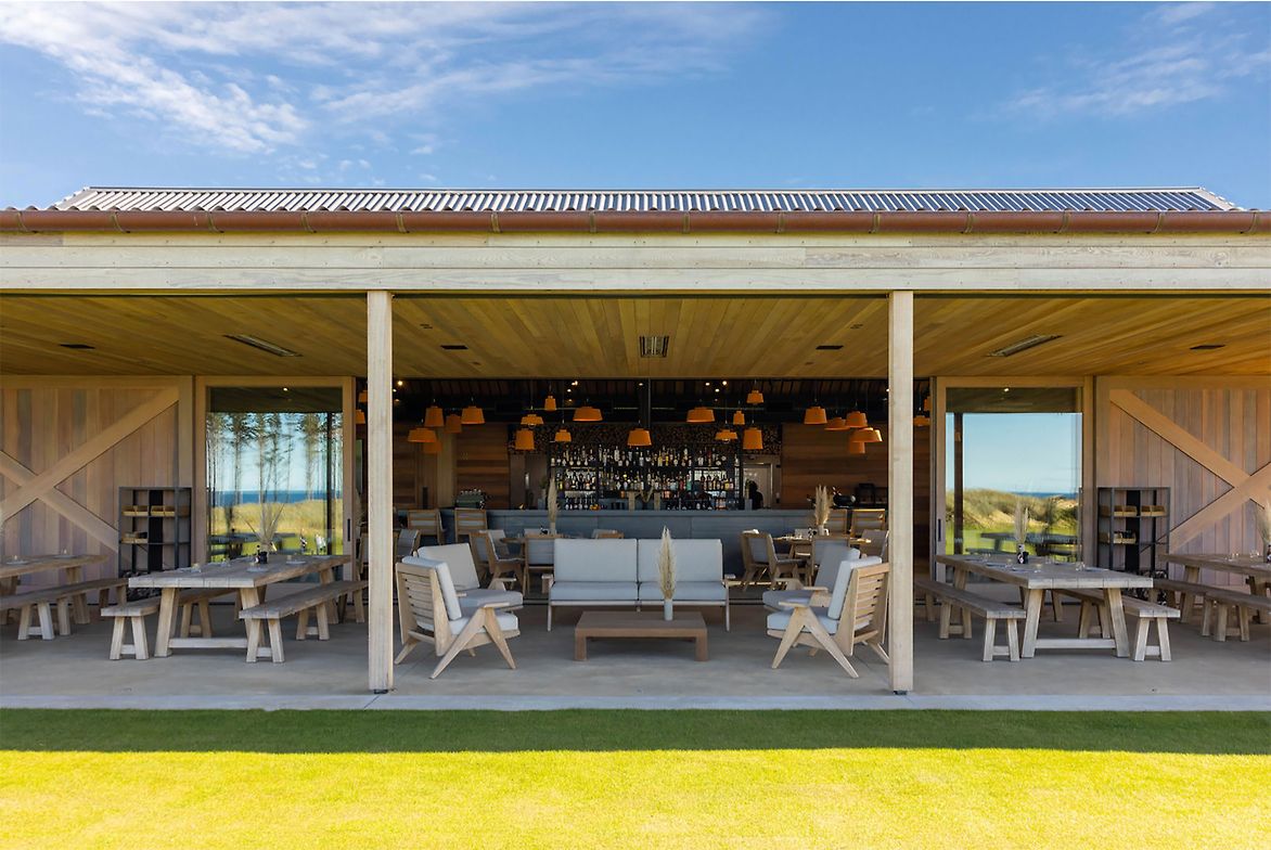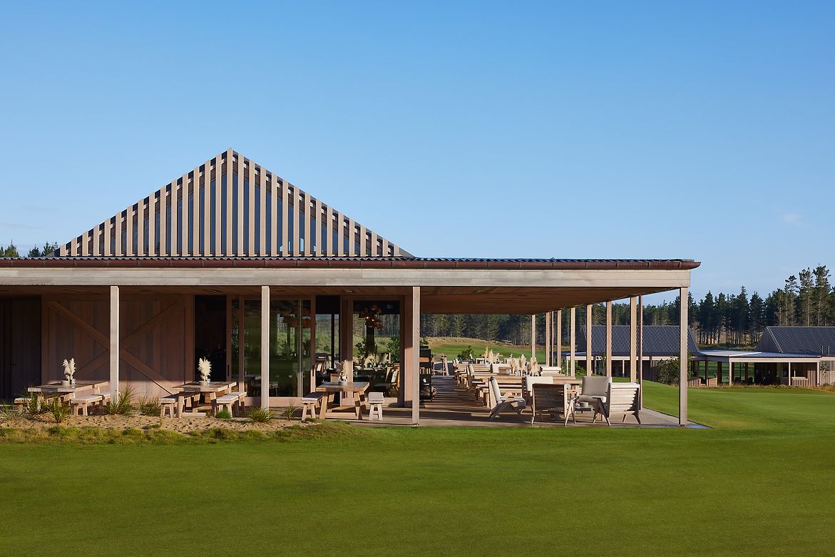 Ric's is a relaxed and welcoming restaurant at the Te Arai Links golf course. The brief called for an unassuming “barn” building that would sit harmoniously within the rural landscape. It is intended to be a place you could sit back and spend hours enjoying. The form is reminiscent of a quintessential New Zealand barn/woolshed, with a gable roof and verandah, creating a 6 metre eave that bleads out smoothly into the "playground"