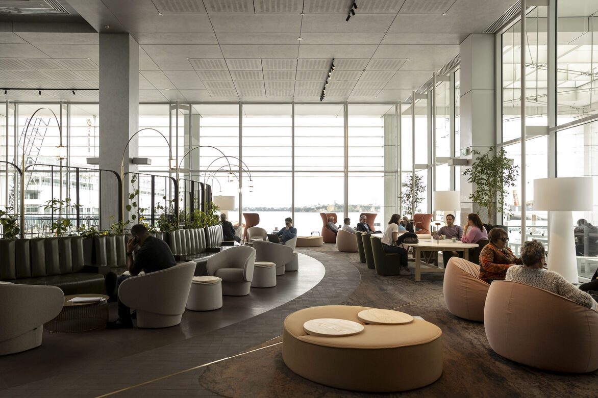 This project redefines the multipurpose and adaptive reuse of the lobby. In providing a clearly defined series of experiences, the lobby functions in many modes throughout the day. As a transient space with heavy foot traffic from adjacent transport terminals and connection to Commercial Bay, the lobby had to be intuitive and attractive. The use of light, planting and materials is inviting for the users to enjoy in a setting of their choice. The space embodies the spirit of the hybrid working era, with fit -for-purpose spaces to connect and socialise. The addition of meeting suites and event facilities makes it an attractive proposition for tenants to utilise throughout the year.