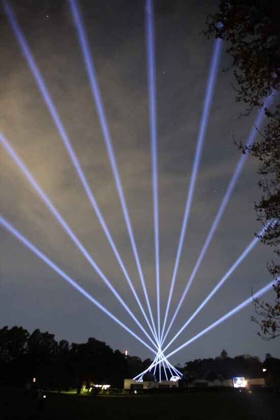Matariki Lights combines moving pillars of light with waves of sound composition infused with taonga pūoro to celebrate the traditional phases of Matariki celebration. 9 beams soaring to a 1000 metres in the sky represent the 9 stars of Matariki, and connect Ranginui to Papatūānuku.