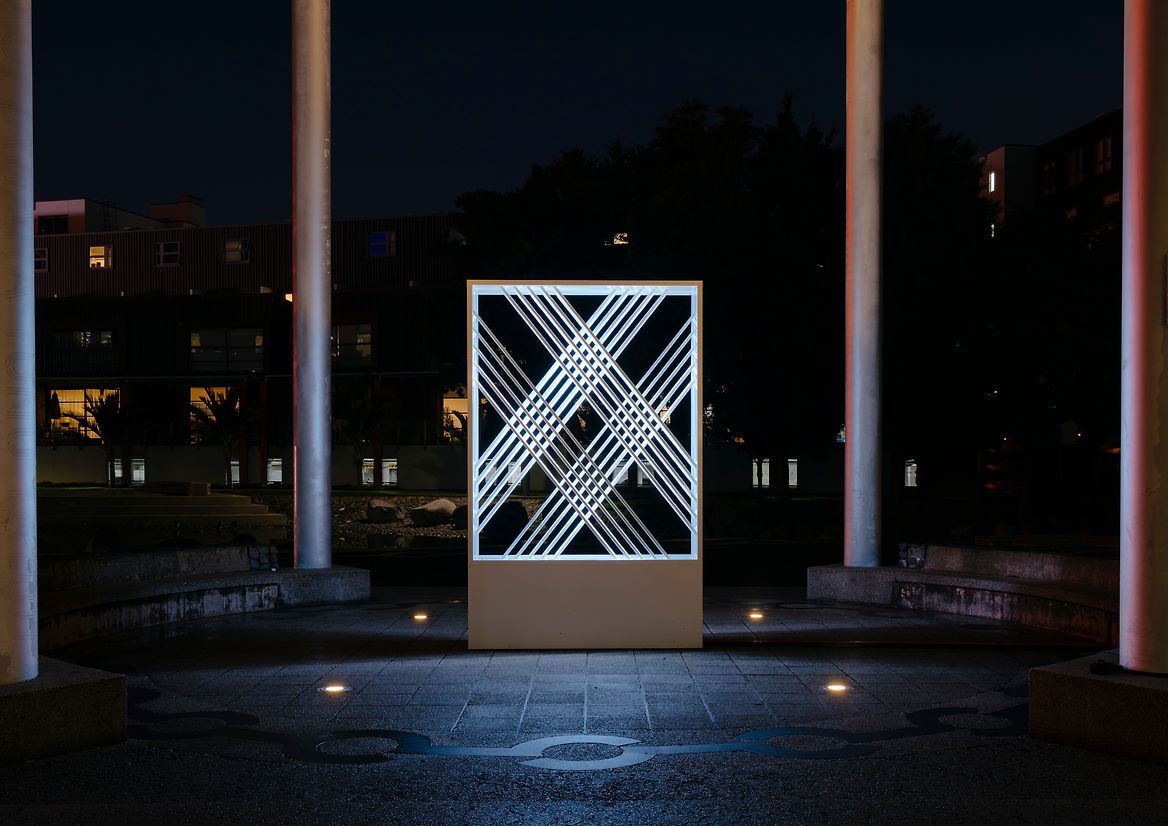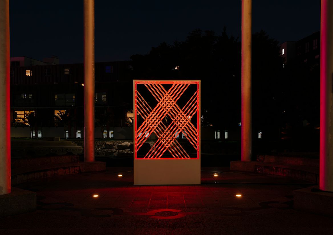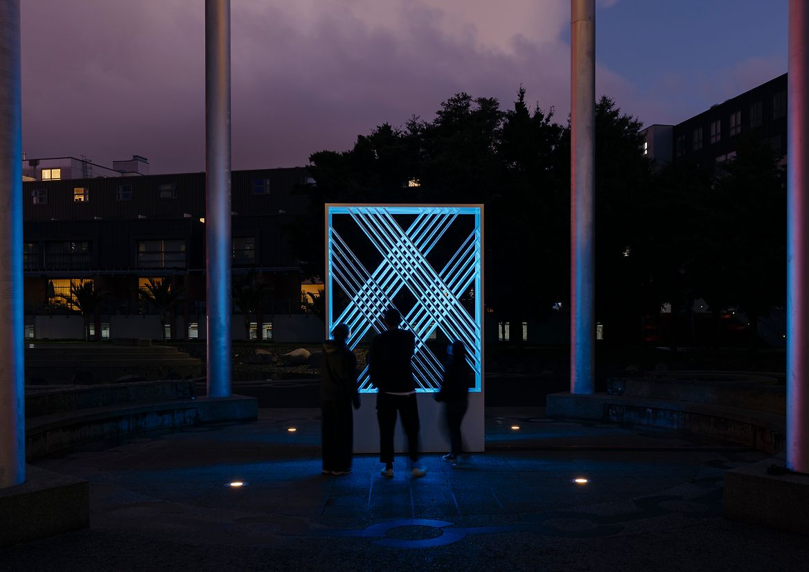 The installation acts as a luminous urban beacon to mark the rising of Matariki. Strands of light, embedded into aluminium extrusions, weave together to represent the Matariki cluster in a single oversized star. A colourful animated lightshow flows through the strands, taking us on a journey through Te Iwa o Matariki (The Nine Stars of Matariki), in the correct order of their whakapapa (lineage) and in line with the colours of the official Matariki Public Holiday tohu (logo). The lights undulate at different speeds, flowing, beating and flashing. At points, it carries the green energies of harakeke (flax), in the next instant a calm flowing river, and then the warmth of a fire burning. Housed entirely within a powder coated white aluminium structure the sides of the sculpture offer explanatory text about the nine stars as well as stories from Ngāti Whātua Ōrākei.