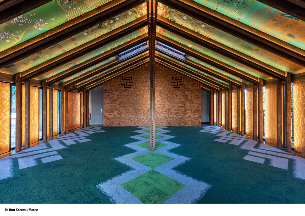 Te Rau Karamu Marae opened on Massey University’s Pukeahu Campus Whanganui-a-tara, March 2021.
