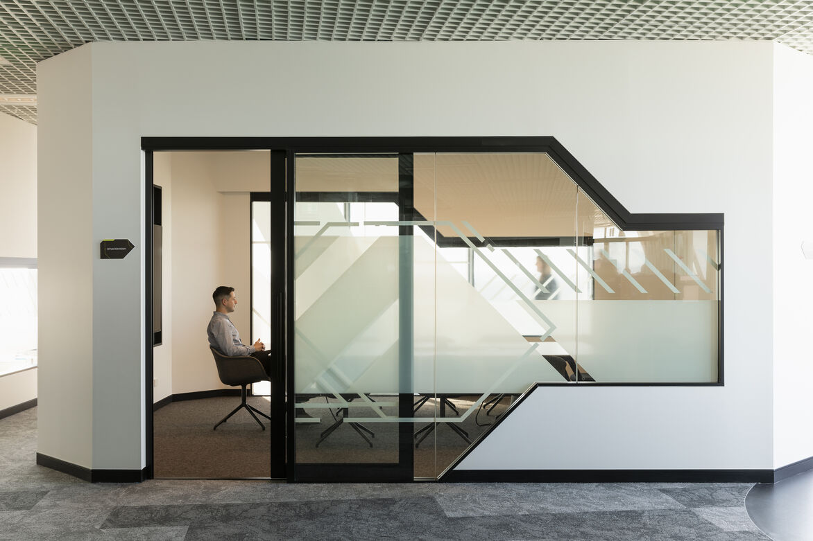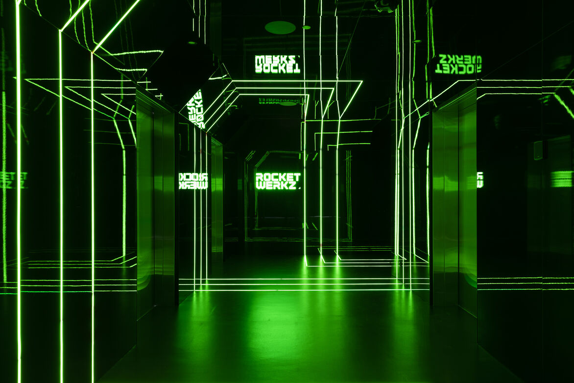 From a reflective-gloss black-out, geometric portal to clinical white ‘decompression’ chambers. From digital immersion rooms to fully isolated recording studios and 24-hour streaming rooms, this is no ordinary workplace.