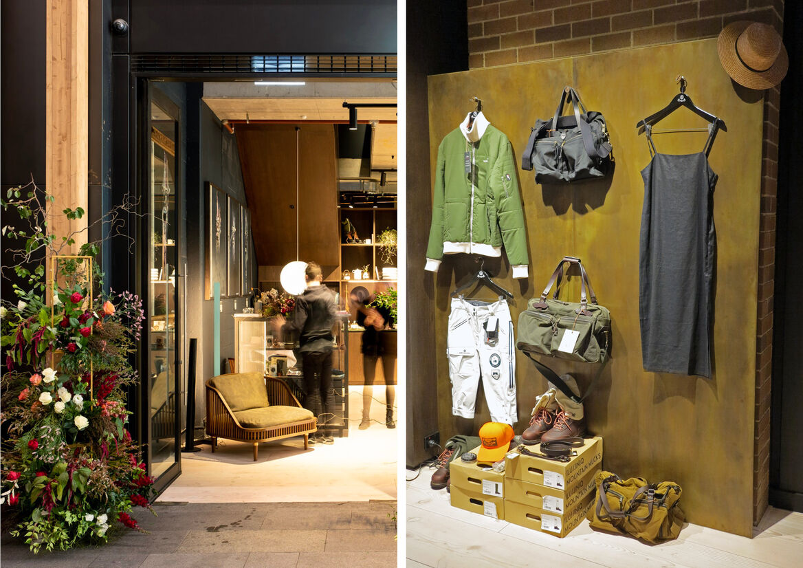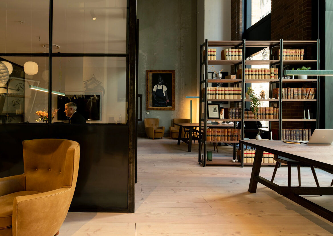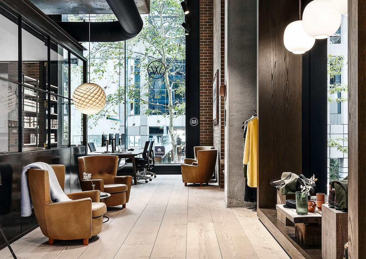 The retail component is used to create a feeling of comfort for people using the space. Staff float in the space instead of sitting at a counter, and welcome people that enter the store as guests, not customers. There is no awkward minimalism, instead loose and eclectic compositions of products are used, in a style closer to one's home than a luxury store. Everything for sale is integrated into the space so it feels in use, rather than on show. Discovery is encouraged - things can be found in drawers or on tables.