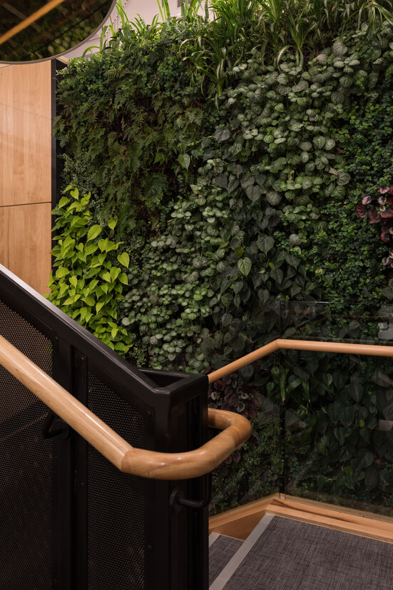 Views can be enjoyed throughout the space, but the hero view is of the harbour to the north. It was decided early on to design to celebrate this view, for not only the front of house visitors, but also the staff hub space on the upper floor. An open access stair and green wall links the two spaces with a generous void opening up views and enhancing the visual connection.