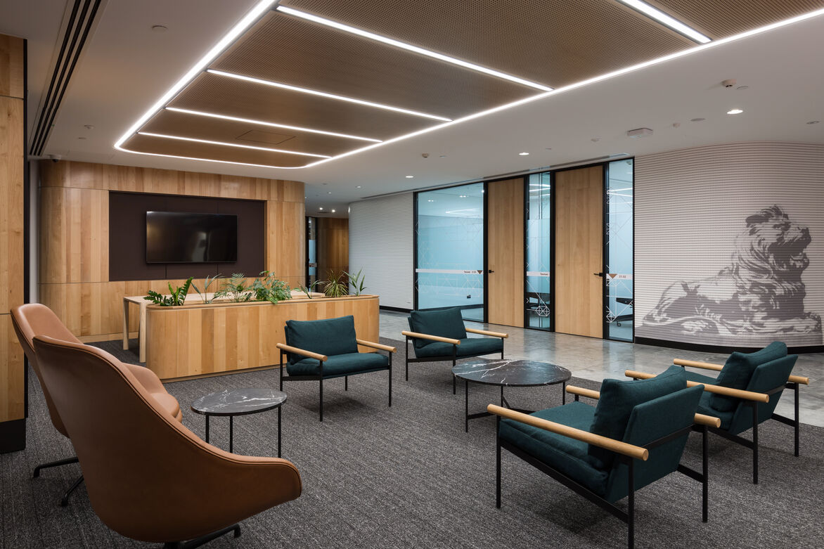 In addition to the office, a retail branch was integrated with customer access direct from the lift lobby. Careful consideration ensured the retail space was read cohesively with the fitout, whilst at the same time having distinct zones for security and clear boundaries between the spaces for commercial and retail clients.