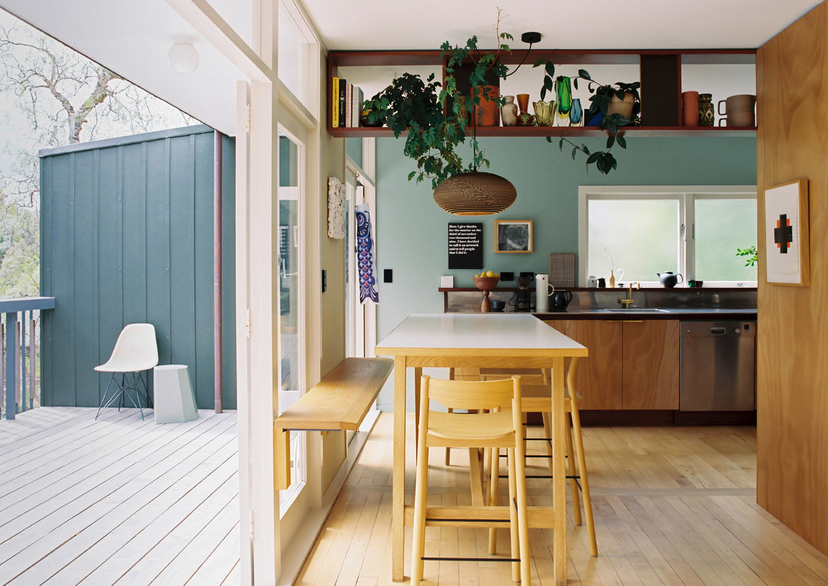 So inviting! Working here would be a pleasure. The retro warmth and familiarity transforms this tired house into an inspiring communal workspace in the bush