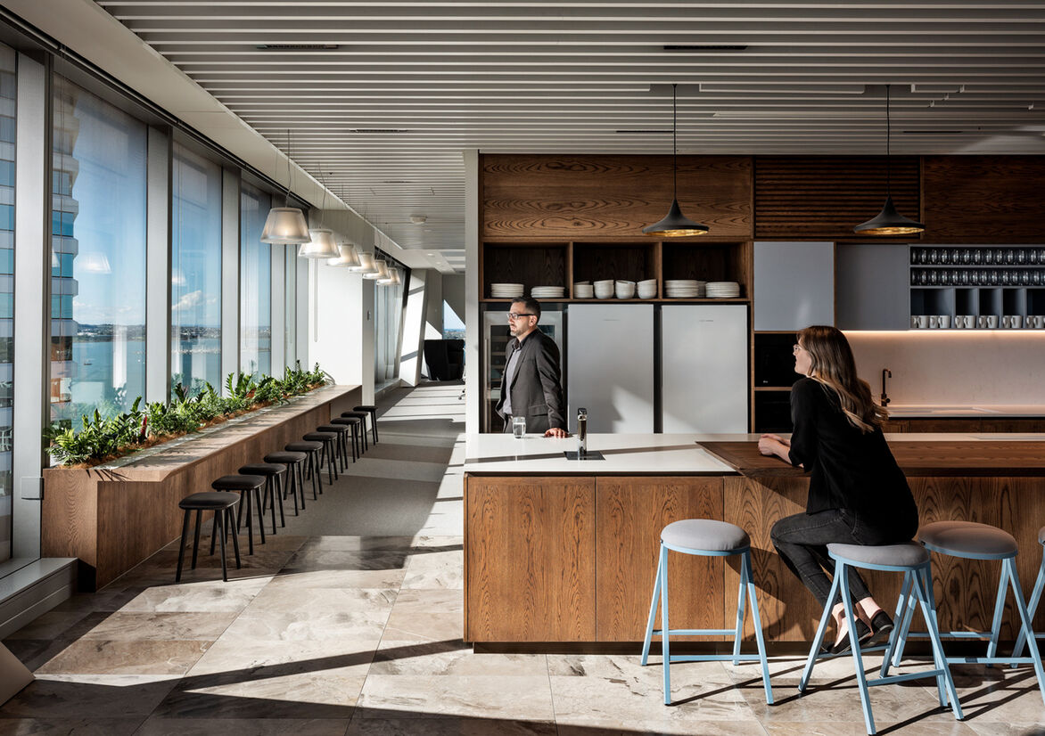 MinterEllisonRuddWatts’ is a top tier law firm providing a full range of legal services and business advice. For the fitout of its new offices within PWC tower, Auckland CBD, the firm sought to celebrate its proud history and create a timeless interior design aesthetic, reinforcing a perception of professionalism and providing a premium employee experience. The fitout called for a flexible design that could seamlessly accommodate a variety of activities - from hosting industry events supported by inhouse catering, to facilitating confidential meetings as discretely as possible.