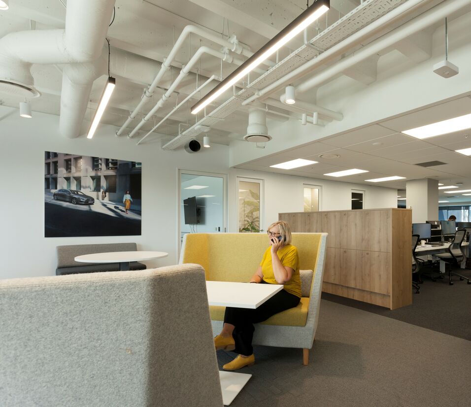The workplace was designed to provide agile work settings that allow teams to come together to work and collaborate within the office and/or with remote teams. Alternative work settings are provided to support quiet concentrated work, collaboration, digital and in-person meetings. Seamless technology was integral to the workspace to enable the new ways of working.