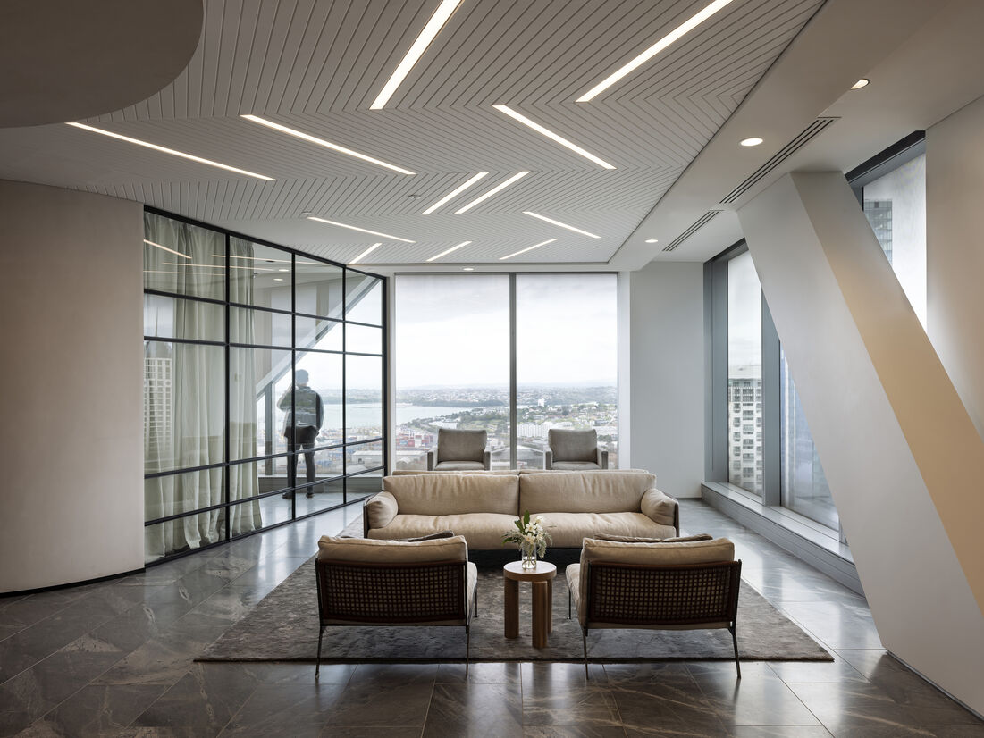 A truly collaborative exercise between Architectural, Interior and Lighting designers, Jarden’s new Auckland Office on the 32 floor of Commerical Bay offers a highly bespoke experience of elegant and timeless materials. An exercise in restraint, this limited palette has been hand-selected and painstakingly paired with all finishes, furniture, fittings and joinery. The result is a stunning experience which demonstrates timeless quality and a humble luxury.