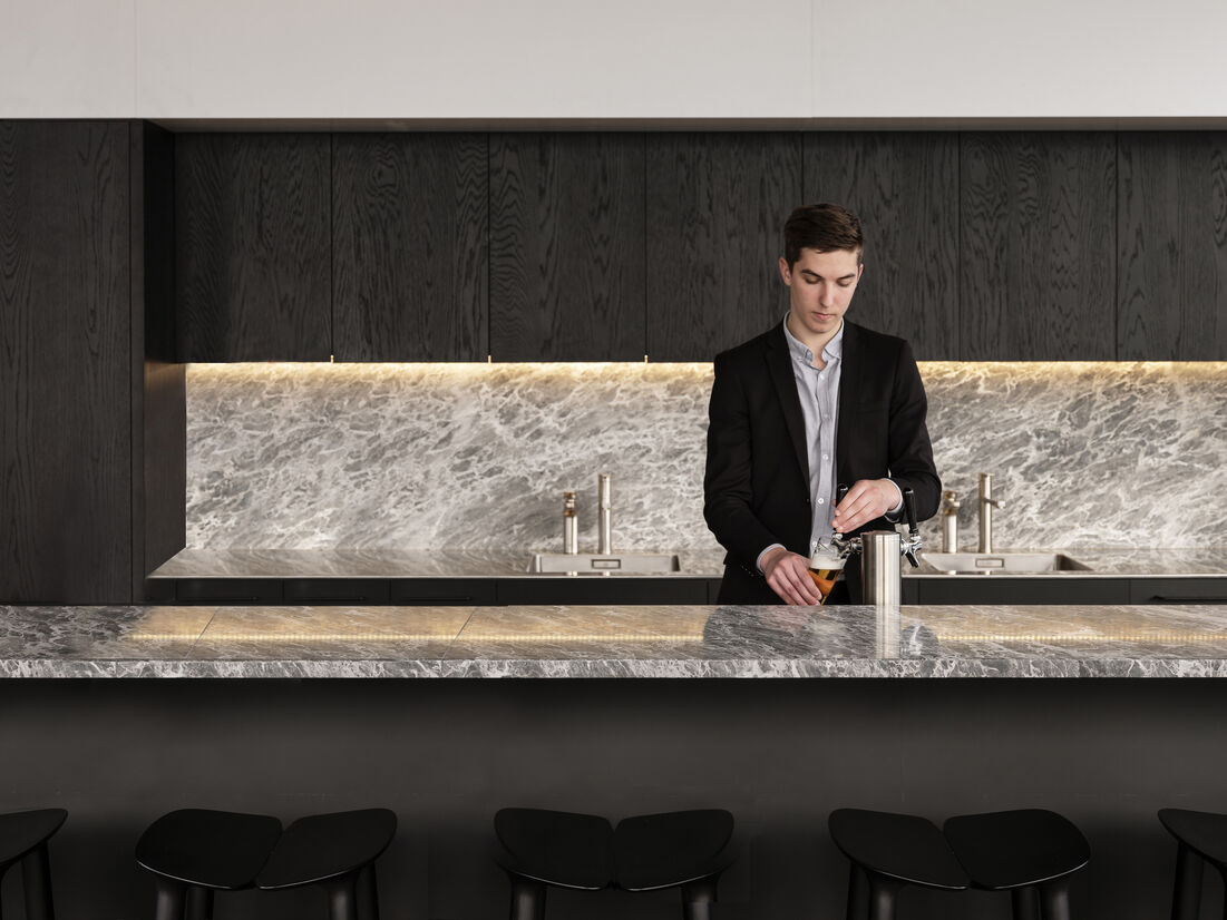 With a fully collaborative engagement across architecture, interior, furniture and lighting professions, nothing has been left to chance. The space successfully achieves that fine and elusive balance between high-end quality while feeling familiar and comfortably welcoming. Most importantly, the client and their clients are overwhelmingly satisfied with the result ~ What is more rewarding than that? Oh, and did we mention the beer tap, that helps!