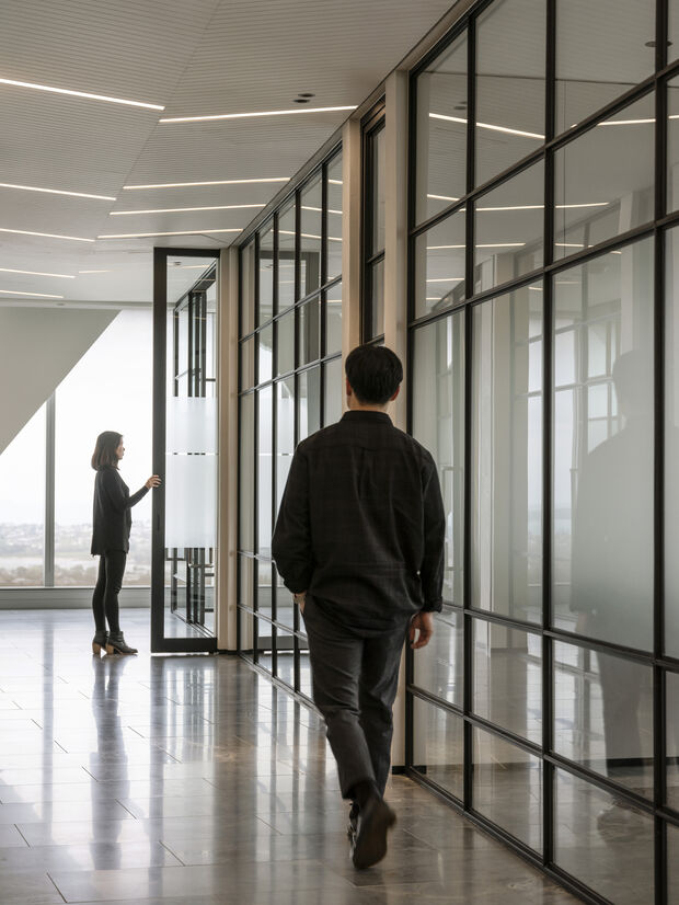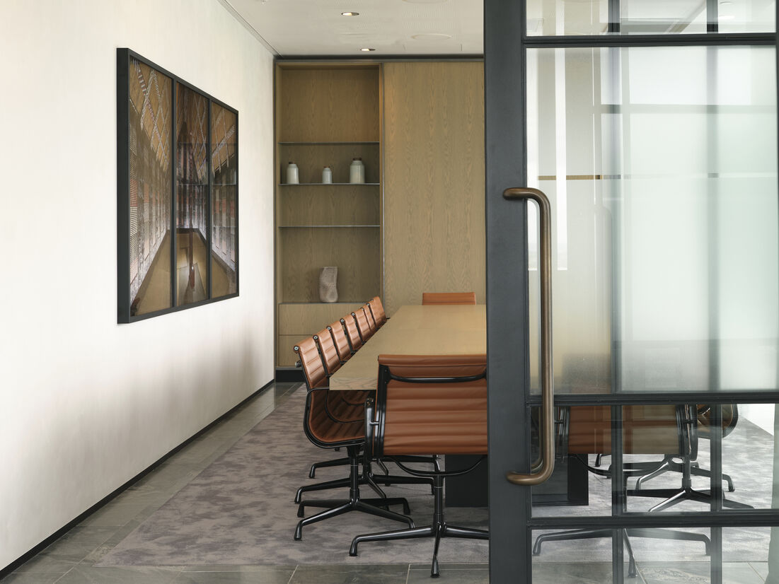 Deceptive planning and meticulous detailing ensure that every square metre of the space works hard yet feels relaxed and flows from space to space in an effortless manner. All services and practical elements are discreetly hidden, allowing for a distraction free experience of this gallery-like space where the workplace and the extensive art collection work hand-in-hand.