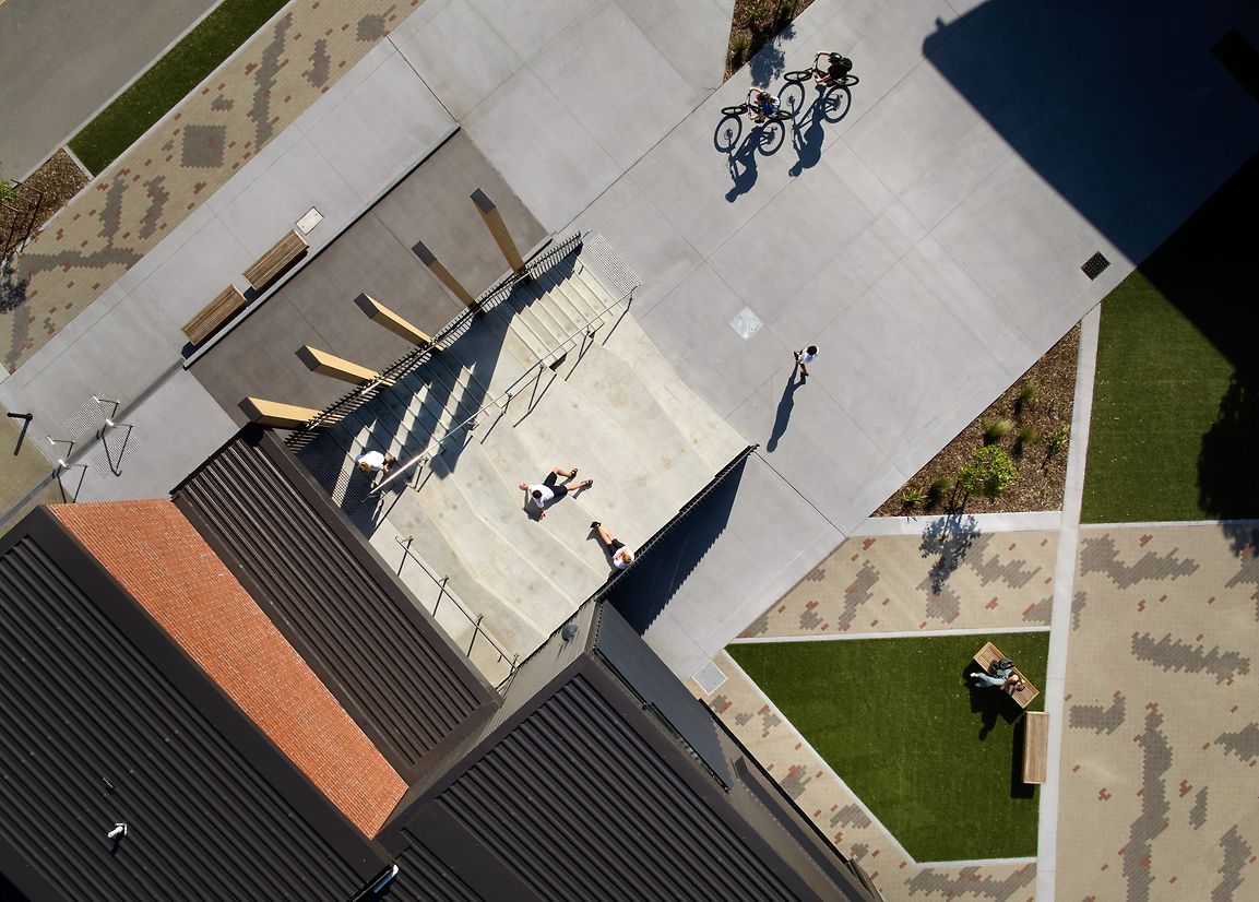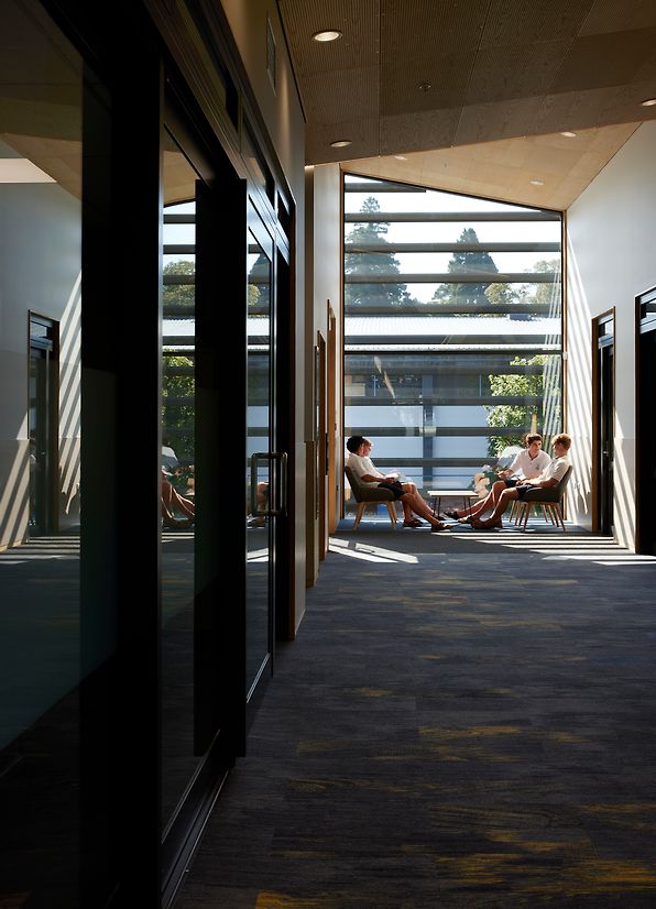 The project redefines a previously underutilised corner of the campus, providing a focal point to the school entrance with a gateway building and new courtyard spaces, catering to students, staff, and the greater community.
