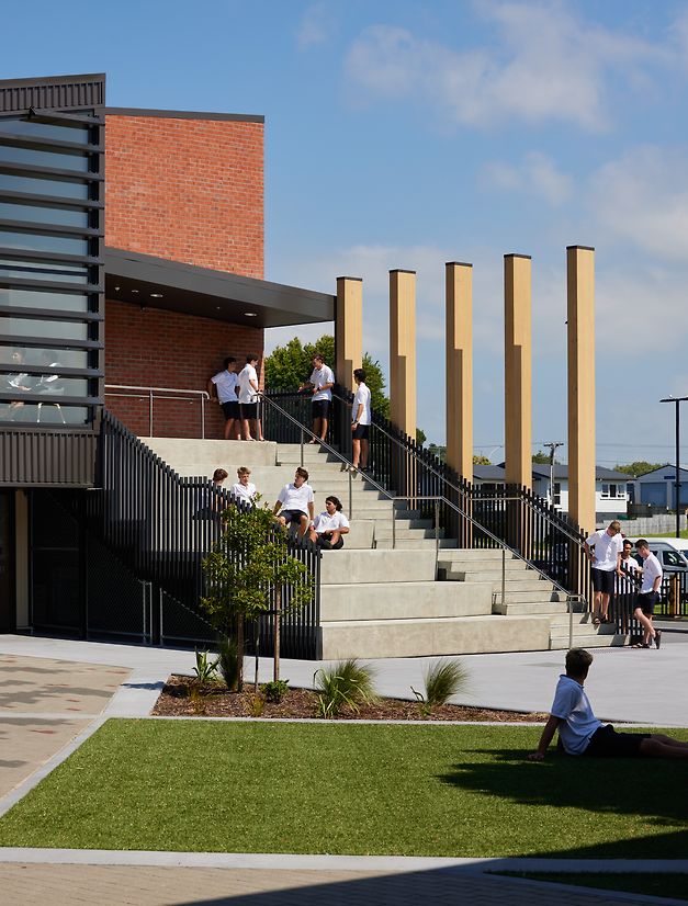 Tauranga Boys College, Landscape Architects - Designgroup Stapleton Elliott: Caitlin Cook, Structural Engineering/Civil Engineering/ Geotechnical Engineering/Planning & Traffic – WSP: Dave Dekker, Services Engineering & Fire Engineering – 2PIR: Nipun Sondhi, Contract Project Manager – Colliers Project Management: Todd Jones, Builder – Marra Construction: Greg Johnston, Quantity Surveyor – BQH Quantity Surveyors: Rory Leonard