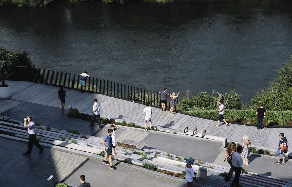The design engages Hamilton with its best landscape feature and activates the area for the different users on many different levels and in many different ways.