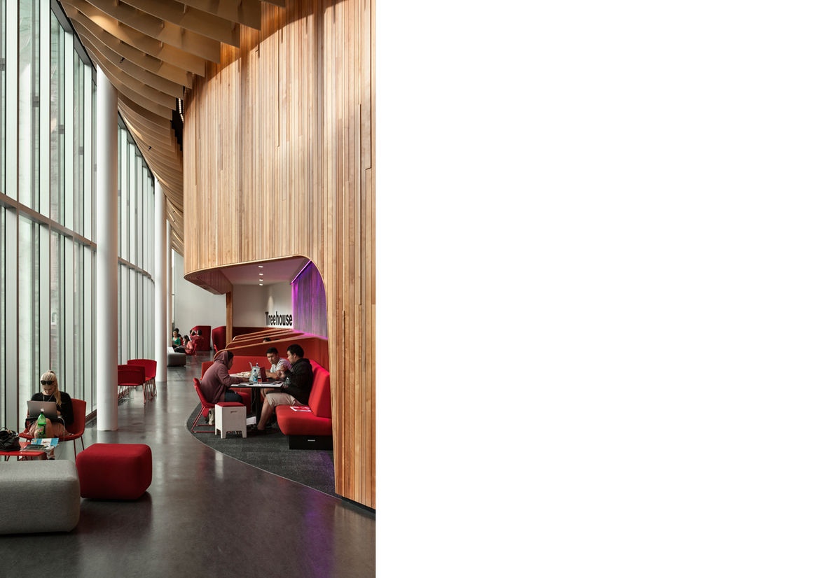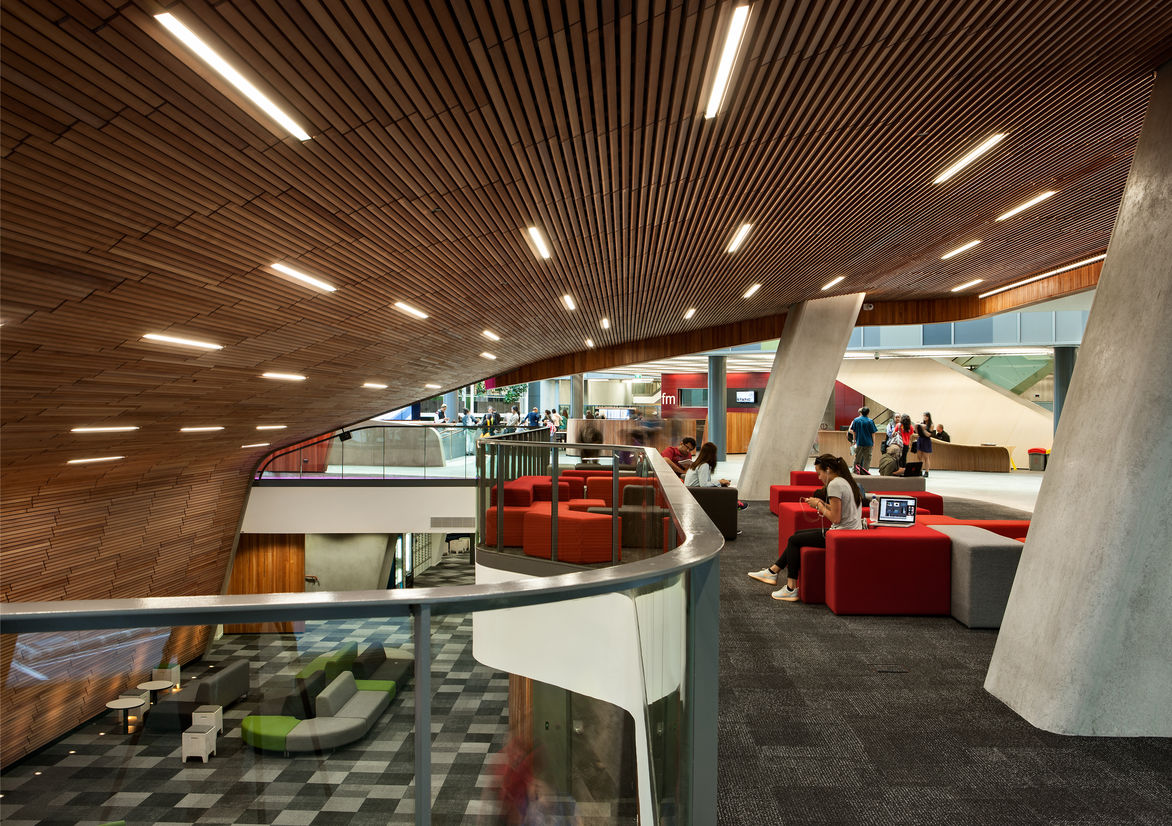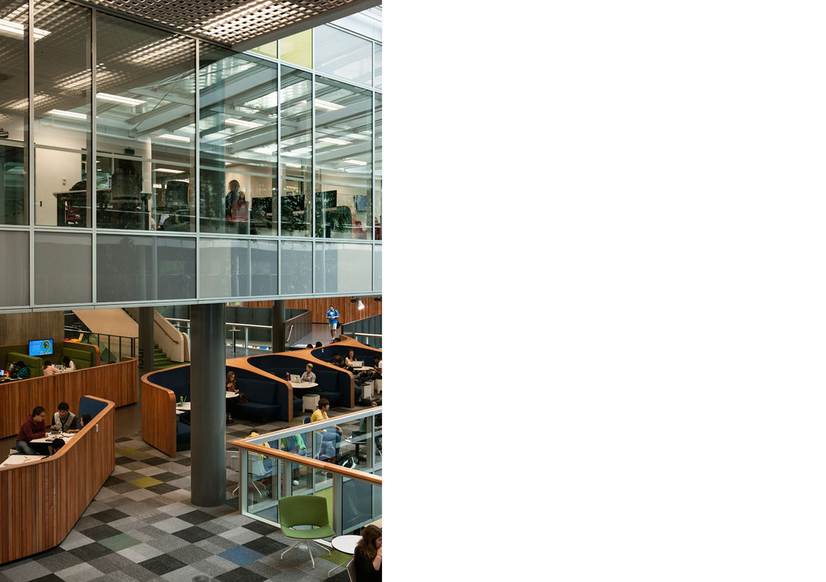 So, now that it’s open, how is the building performing? “Brilliantly,” says Desna Jury. “It’s putting a beating heart into the university and the city campus. The students and the staff love it and it is full of life from dawn ’til late every day. We were totally student-focused with the design and this now manifests itself in an exceptional integrated experience for students as they learn and socialise. I think it is outrageously successful.”