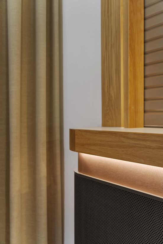A new material palette elevates the space: warm timber (previously absent) adds tactility, complemented by mesh finishes, woven textures, and crafted lighting. These elements create an atmosphere that feels both professional and grounded in community care.
