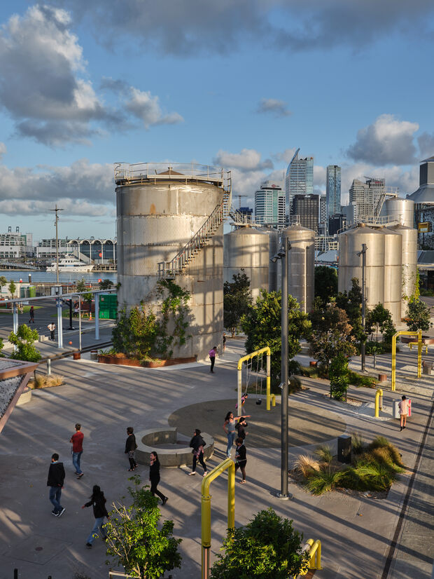 Tank Park creatively adapts and reveals the site's unique post-industrial character (near mythology) into an authentic, engaging and immersive landscape experience. A landmark at the confluence of land and sea, the ‘waterfront’ and ‘park’ axes defining the geographical heart of the Wynyard Quarter.