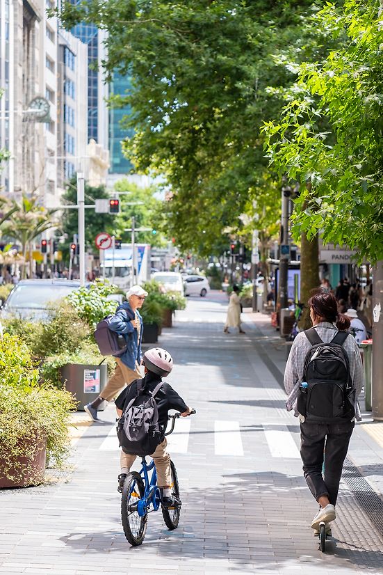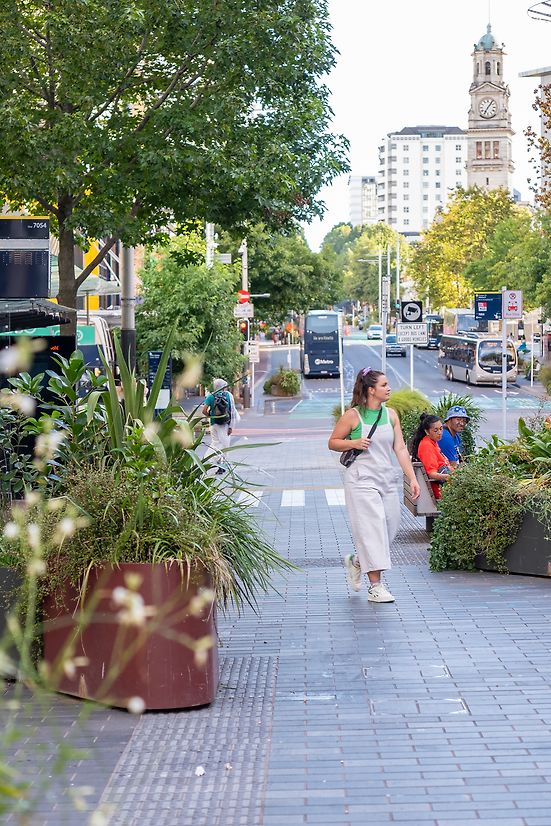 The Wai Horotiu Queen Street Project sensitively reconfigures a nationally important street to prioritise people in a way which is recognisably Tāmaki Makaurau in form and function. The vision for the street builds upon a number of existing strategic documents as a basis for design, including the City Centre Masterplan (2020), Access for Everyone (A4E), C40 Green and Healthy Streets Declaration.
