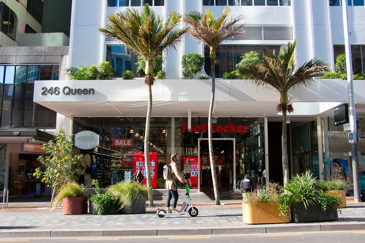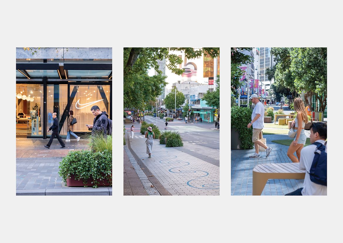 This project represents a complex public realm retrofit, weaving new forms of movement and experience into the existing fabric of Queen Street at the heart of Te Wai Horotiu valley. From Customs Street to Mayoral Drive, the project transforms four city blocks from a traffic congested four lane through-route, to a ‘place’ for people whilst optimising walking & cycling, servicing and public transport with the addition of a new micro-mobility lane.