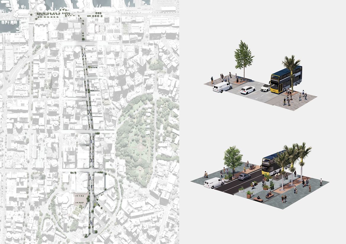 The aim of the project is to create a series of spaces and movements zones which strengthen the connection between the upper city (Aotea Precinct) and lower city (Downtown Waterfront). The scope comprises five interlinked zones, delivered in stages, allowing for testing, monitoring, and iteration between each stage.