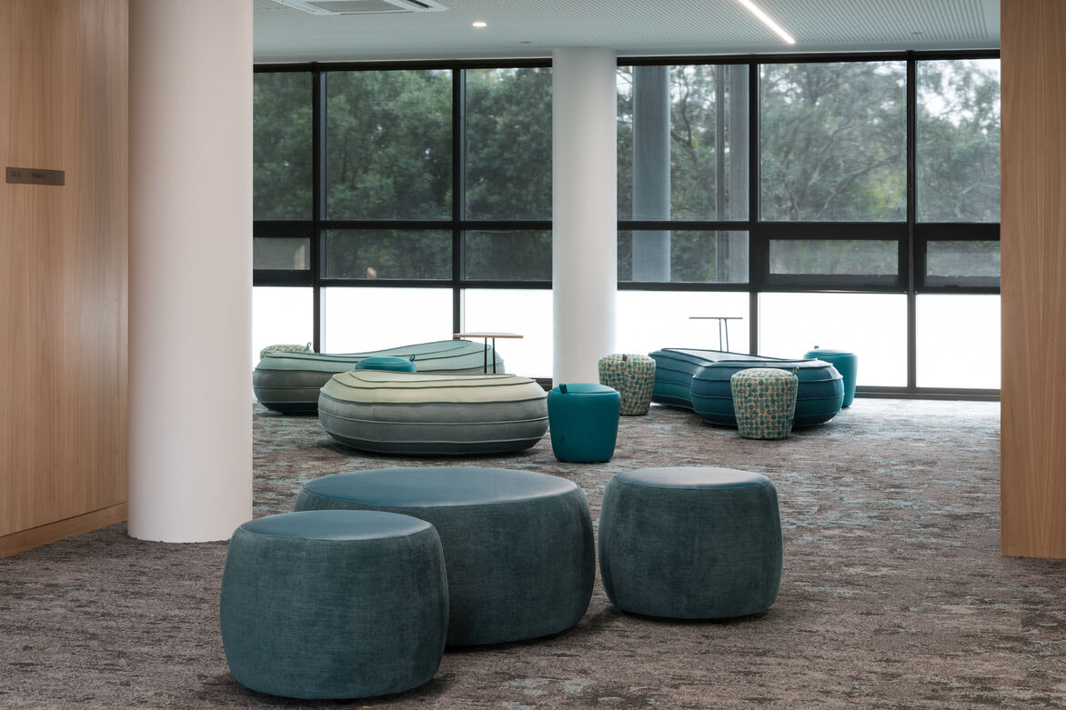 The furniture selected was chosen to be adaptable and flexible increasing the usability of the new spaces and the engagement between students and staff. Soft seating, wall finishes and lighting were also chosen based on their ability to absorb sound allowing open learning spaces to be used effectively for collaboration.