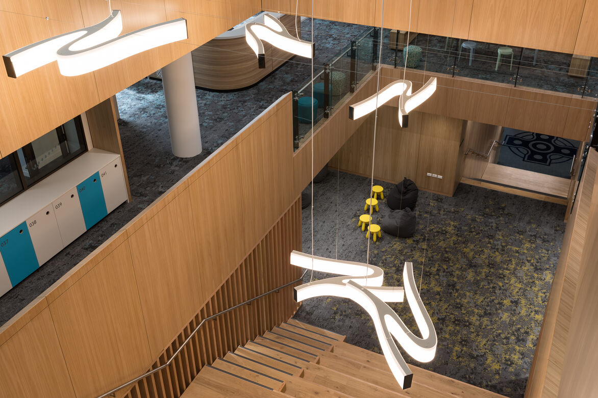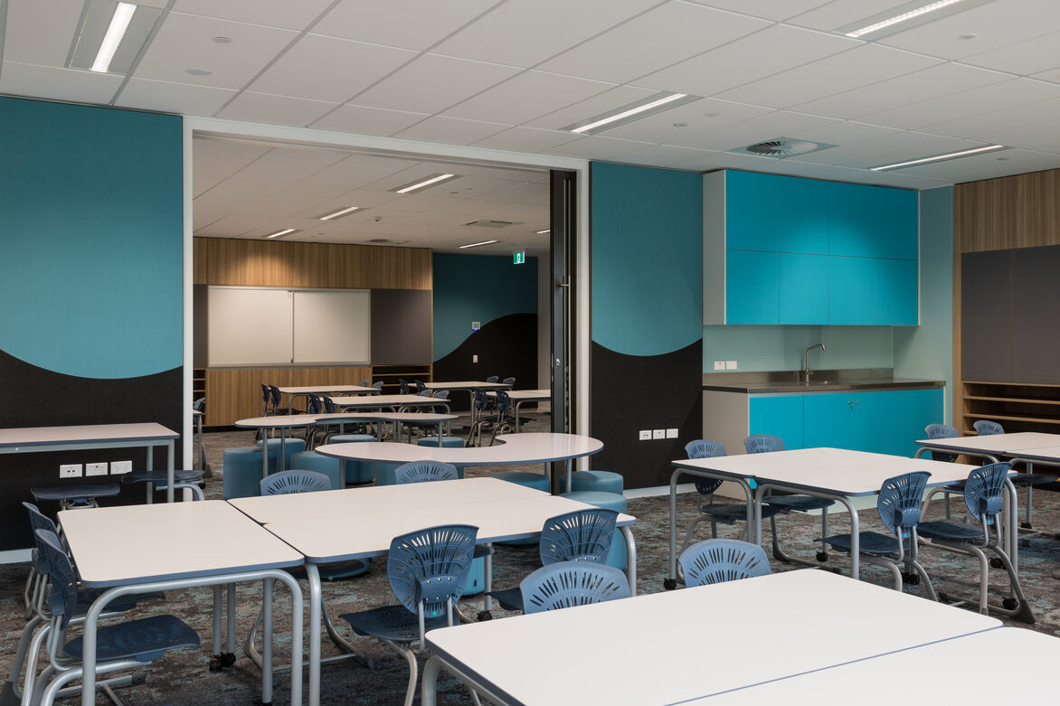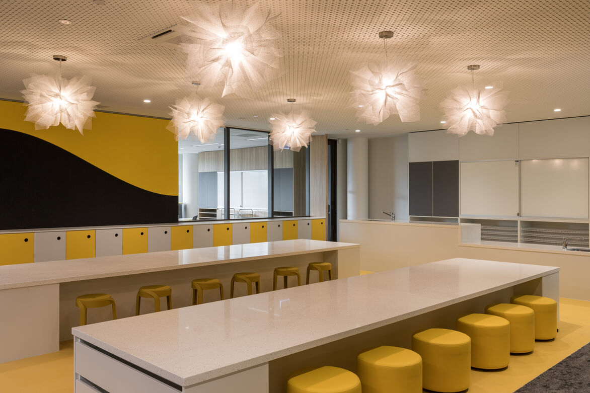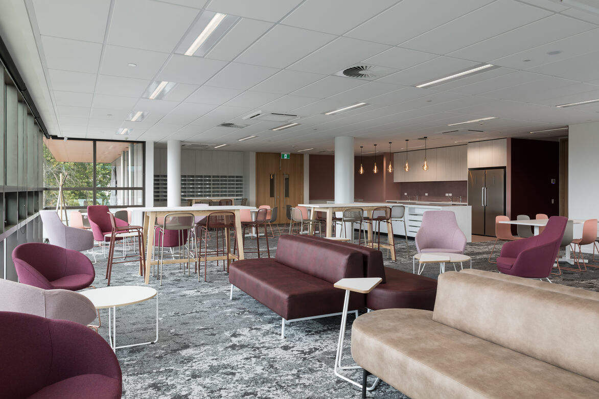 The scope of the interior design and delivery included: interiors finishes for all hard and soft fitout elements, furniture and fittings, feature lighting and graphics. The building required a considered design approach to create an optimal learning and teaching environment that achieves connection, engagement and functionality.
