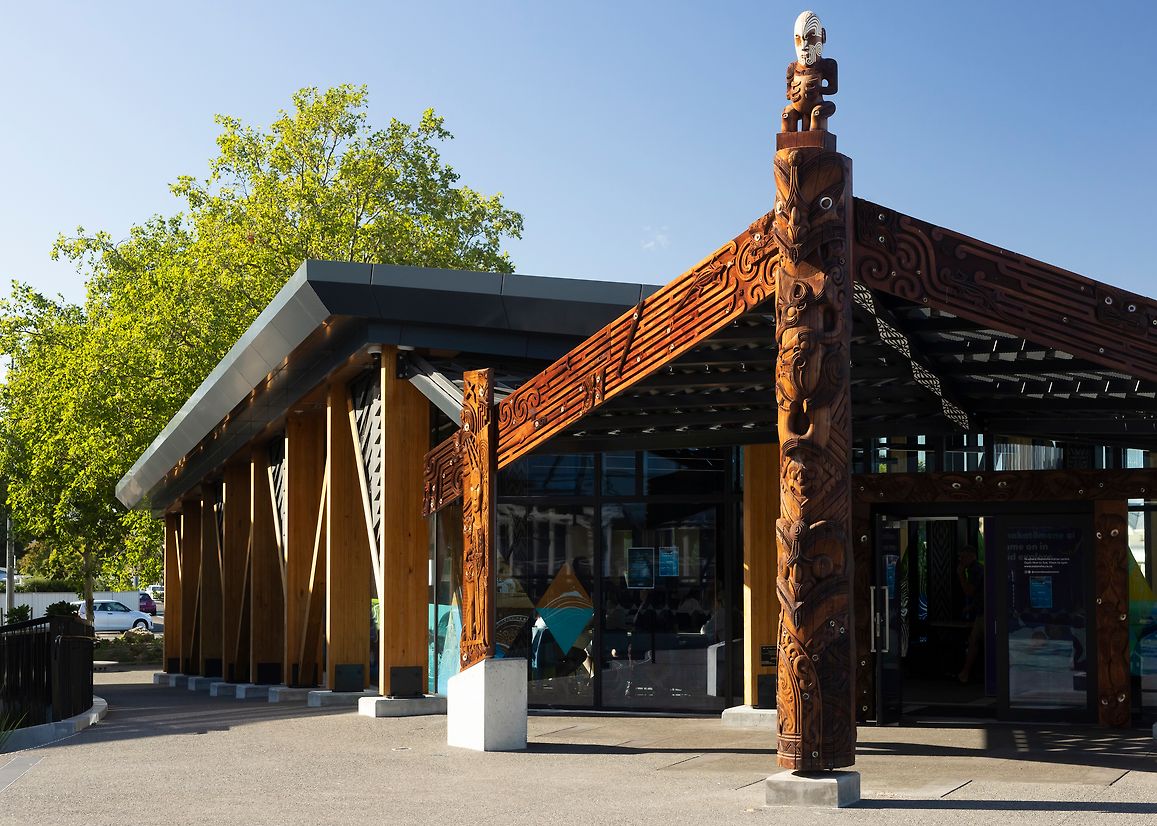 Te Whare Waiaroha is a kaupapa Māori learning space that radiates warmth and welcome. Its innovative blend of modern design and traditional arts celebrates local weavers and master carvers.