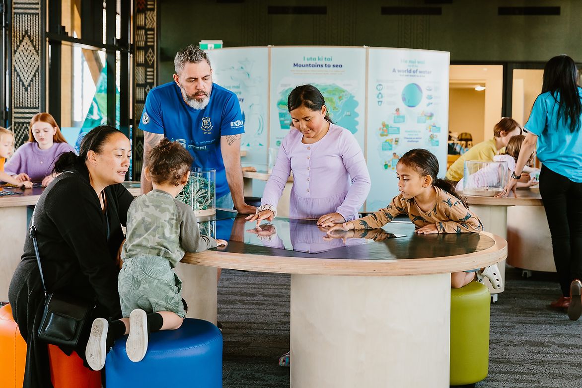 Nau mai, ka whakatōmene ai – welcome to Te Whare Waiaroha, a space for water learning and events. Play games, watch films, discover the atua of Heretaunga waters through carved and woven arts, play digital and tactile games and have your say.