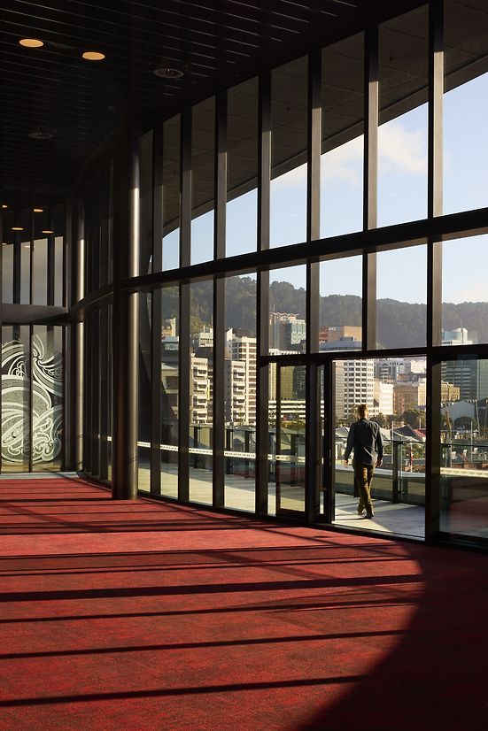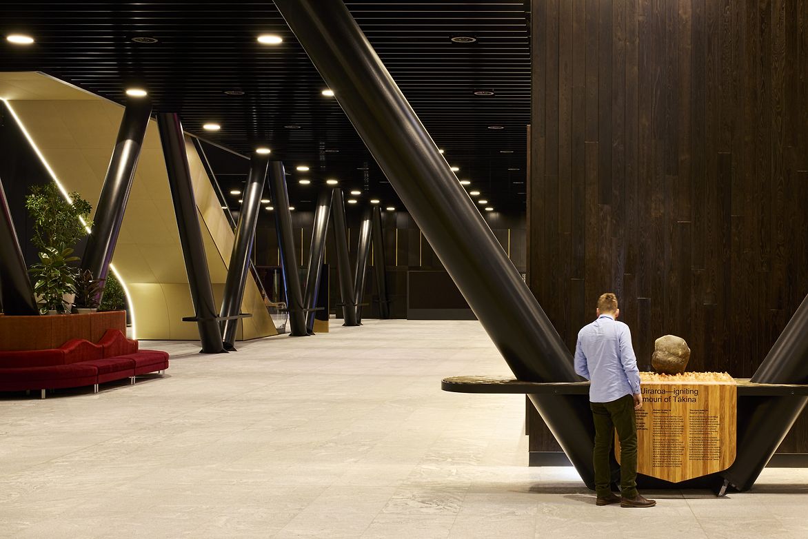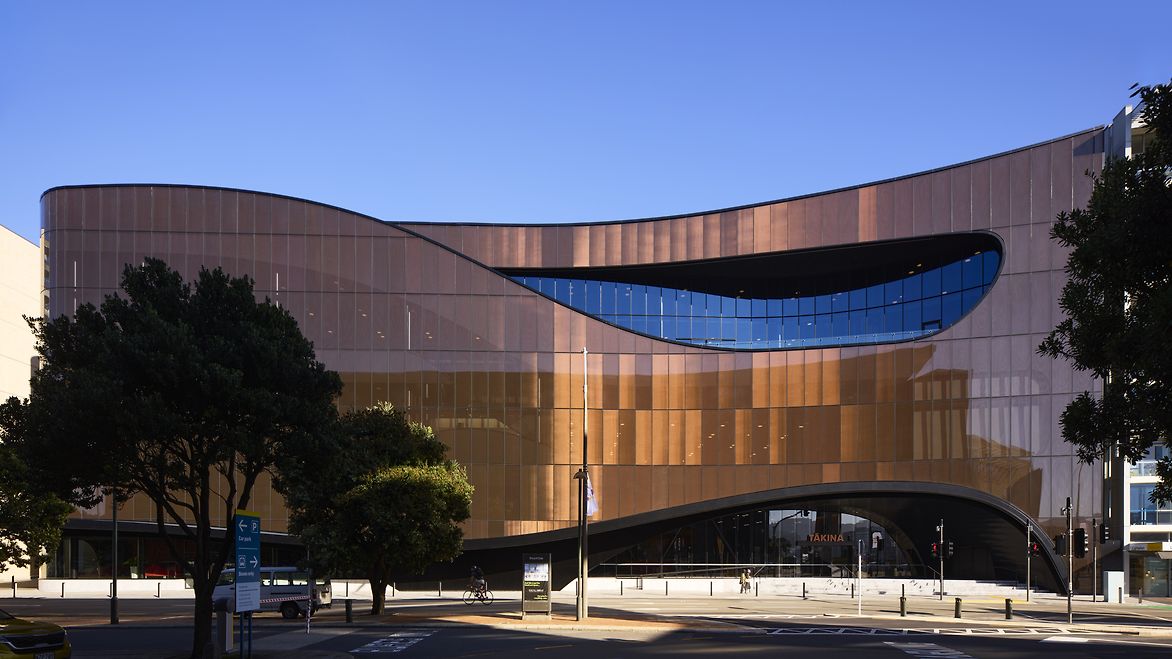 As a gathering point within the city, Wellington’s new convention and Exhibition Centre, Tākina expresses in its form and materiality the essence of place. The building has a unique sculptural form that draws inspiration from a wide range of sources including its maritime location, Wellington's dramatic, and sometimes wild, weather patterns and landforms. It also draws from Māori mythology, specifically 'Te Ūpoko-o-Te-Ika-o-Māui' Maui's head of the fish. The legend refers to the forming of Wellington’s unique harbour and waterfront geology and topography. The resulting design is organic and dynamic.