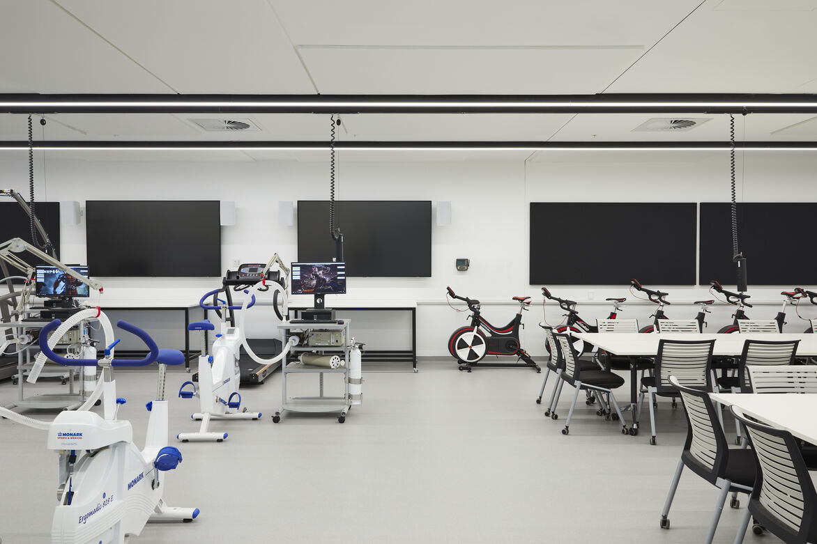 State-of-the-art sports science technology, advanced physiology and biomechanics labs are integrated seamlessly into the design. The outdoor football field runs right into the building and outdoor plazas are the axial link to the Agora, the social heart of the campus, the centralized transportation interchange and further integrates the sports park with the broader campus that was previously annexed by Kingsbury drive.