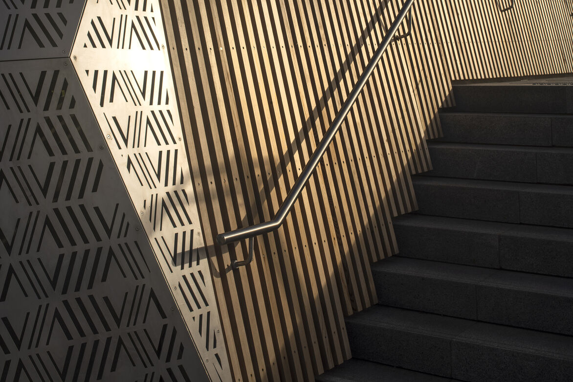 Similarly, the cedar balustrade is the result of a reduction in the underlying steel upstand and the application of a single repeatable detail that wraps and ties the balustrade together.