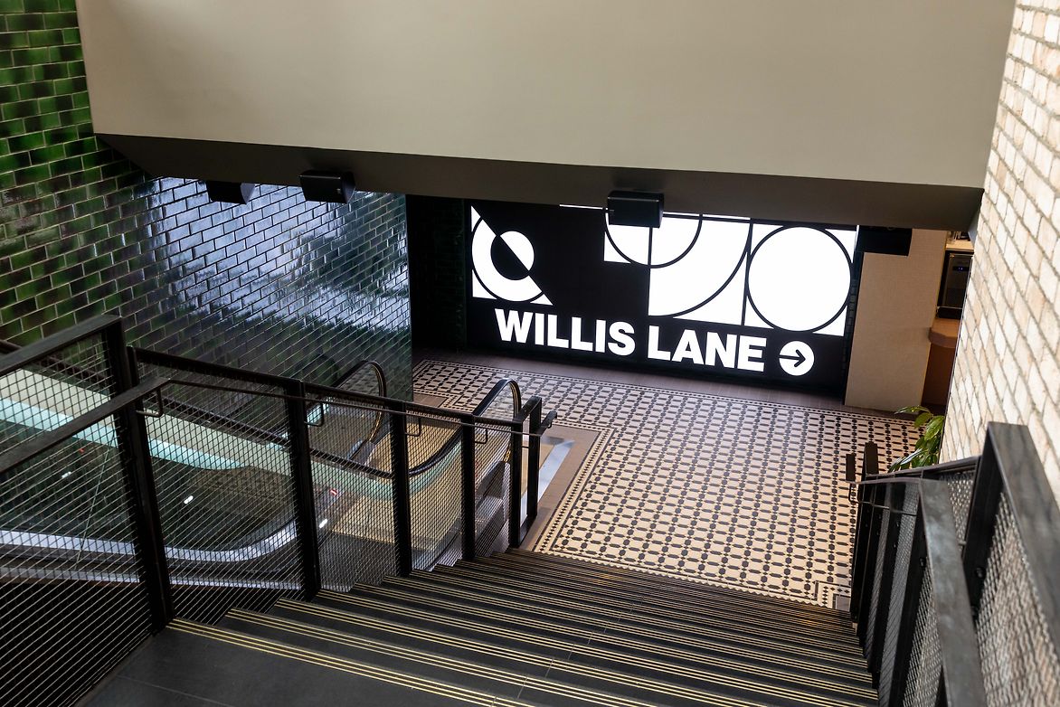 With its sleek and sophisticated interior, Willis Lane is designed to be both convenient and a destination in itself, buzzing with activity from morning to night. Spanning 4000 square metres and hosting 14 food and beverage vendors, the atmosphere is reminiscent of venues one might encounter in the London Underground or New York's Grand Central Station. Notably, Willis Lane also connects seamlessly with the Old Bank Arcade across the street.